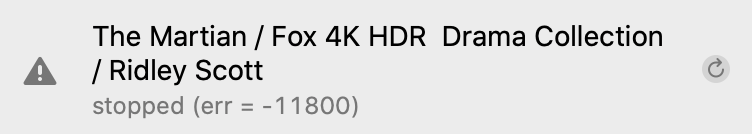 I did a fresh install on Catalina on my iMac 5K Late 2015, I am trying to re-download all the movies I have bought from iTunes over the years though the Apple TV app, figured just go cold turkey and start new library's since iTunes is gone and start fresh. I was able to re-download 3/4 off them, the rest I get this error: stopped (err = -11800) Its not my internet connection as I was able to download the other 3/4 of them, and I am using a wired connection with Unlimited Data on Shaw 600, has anyone else ran into this issue? I do keep my Library on a external thunderbolt drive as I have over 2TB of movies and TV Shows.