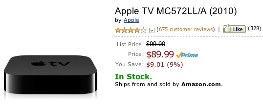 As noticed by 9to5Mac, both Amazon and Best Buy have dropped their prices on the Apple TV by $10 to $89.99. Interestingly, Amazon has also added a "2010" designation to its Apple TV title, leading to speculation that the retailers may be making room for a potential update to the device.