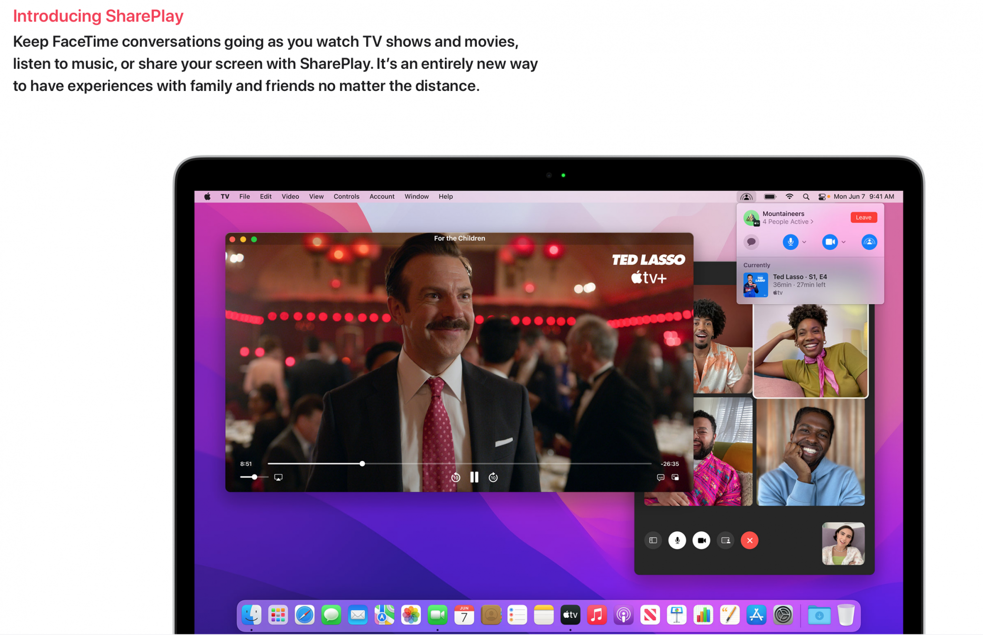 SharePlay is a new set of features designed for shared experiences. For example, it will be possible to listen to music together, watch movies, and share your screen.