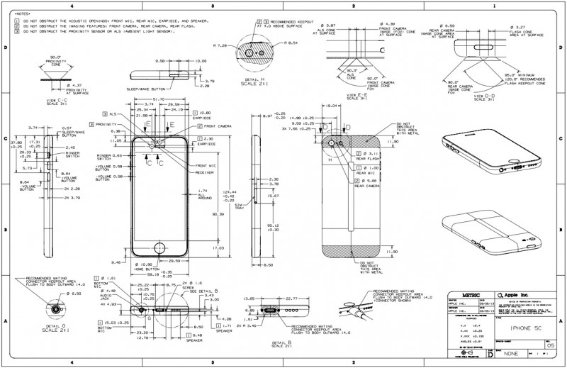 Apple late last week updated its official guidelines for third-party case makers looking to create products for the new iPhone 5s and iPhone 5c, giving detailed schematics (PDF) and revealing additional details about the construction for each device.