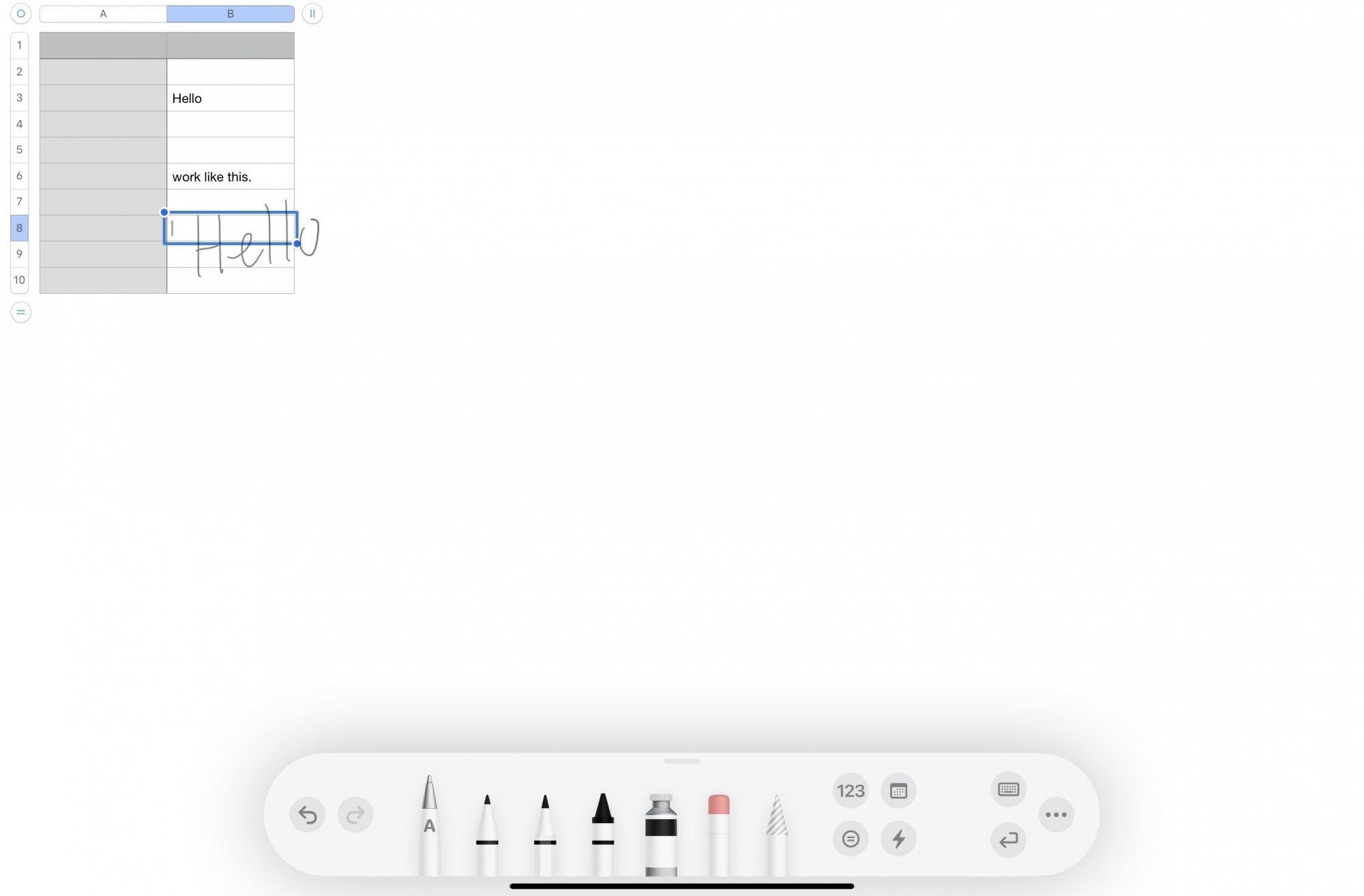 Select a cell and make sure that the floating palette you have selected the pen with the “A” on it.I can't seem to Scribble on Numbers' cell 🤔