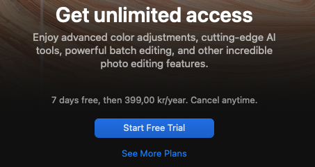 This is in Photomator's main menu:Is that screenshot from inside the app? Because I still see the lifetime options in the applestore description, so if they removed them from app code and didn't even bother updating the app store then that is really bad.