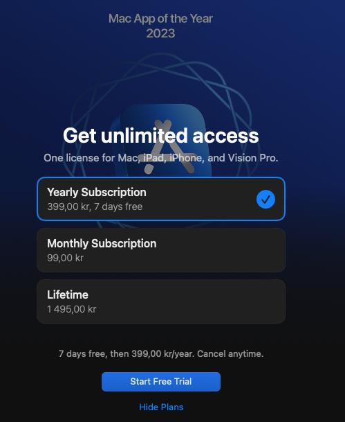 The dated tagline "Mac App of the Year 2023" goes to show how little effort goes into managing this porduct and its sales these days.
