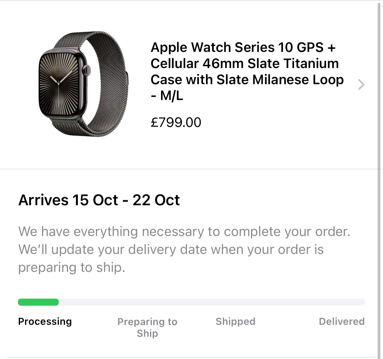 Yeah, that delivery date may not come forward as the Milanese loops are in short supplyView attachment 2421297I guess I’ll wait