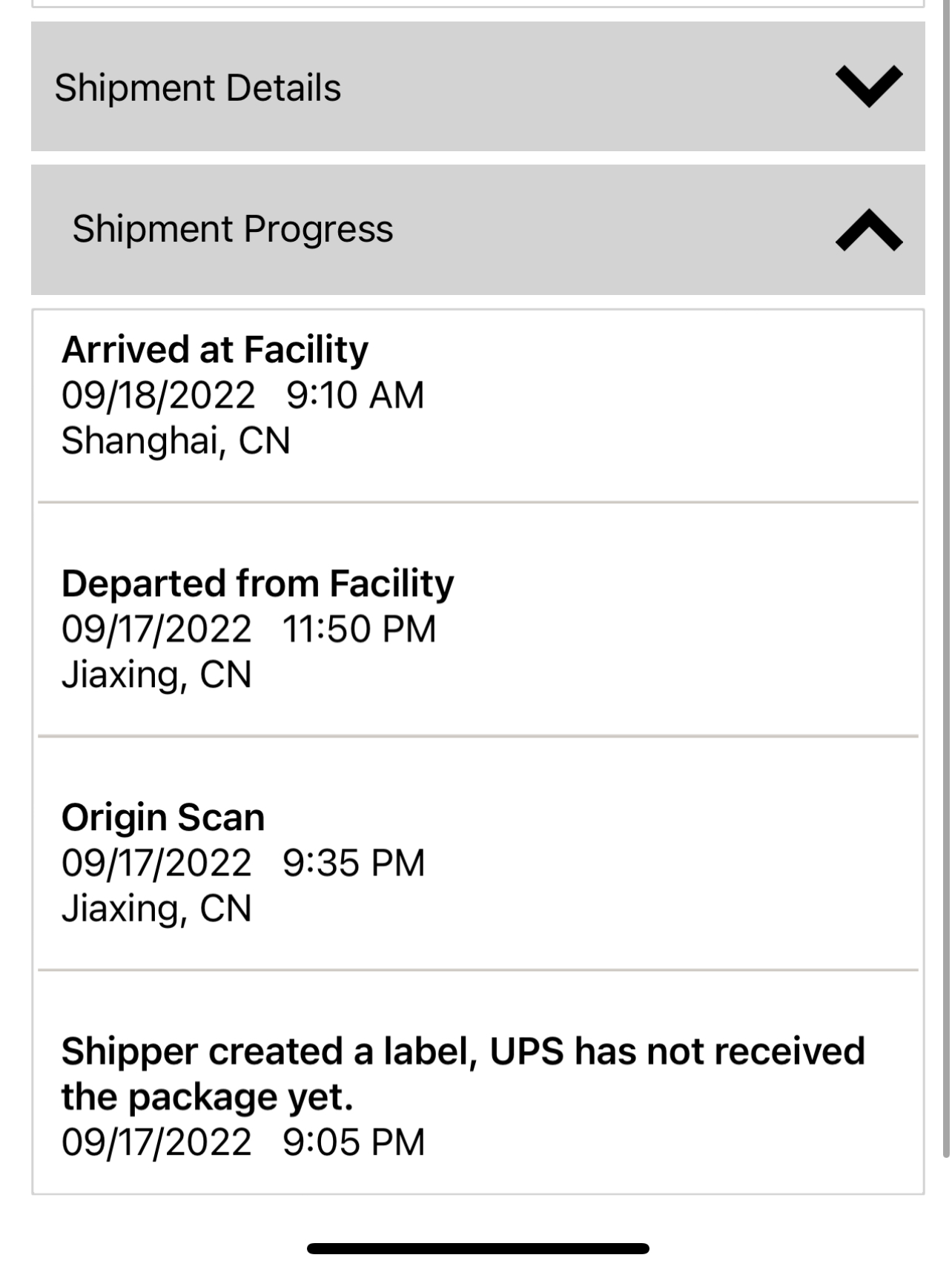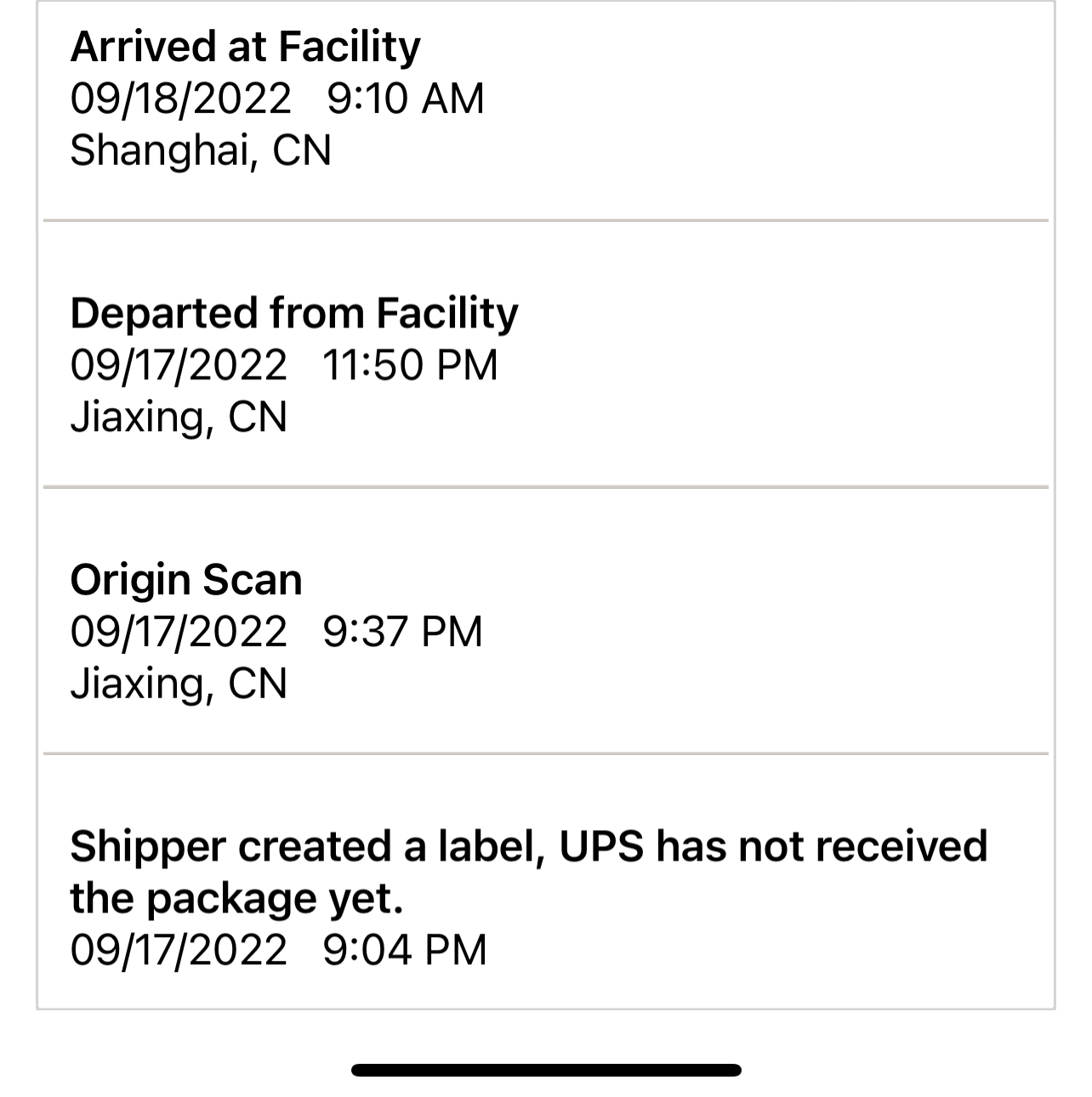 Haha me too… iPhone 14 Pro Max didn’t show up in my UPS MyChoice and FLEW across the world no problem lol AWU DID show up and now it’s stuck… lol I agree with @julit0 though, could just be their off day but it’s now 5:37am in Shanghai on Monday so I hoped it would scan overnight early morning (their time). *checks up MyChoice 7,930,629 today* lol