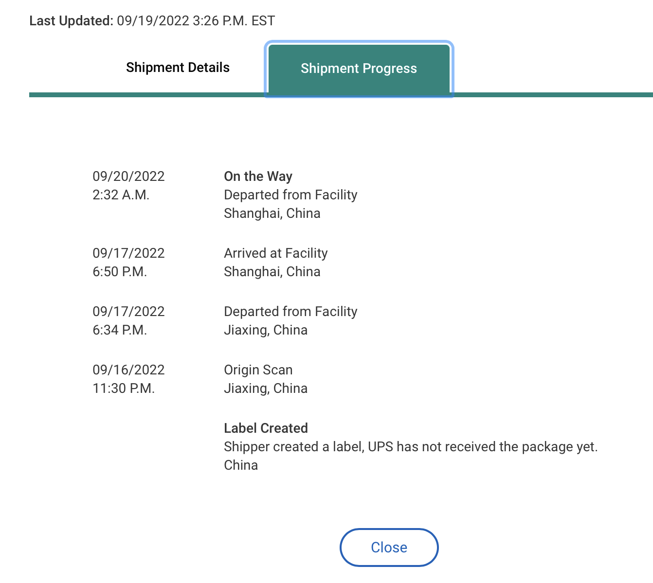 It looks like it's heading to S. Korea so expect an arrival scan soon.My guess is we are on UPS 81, which just left Shanghai.