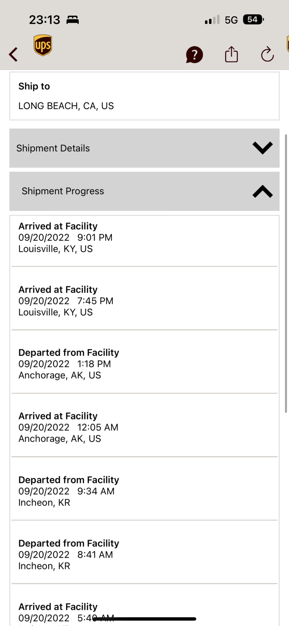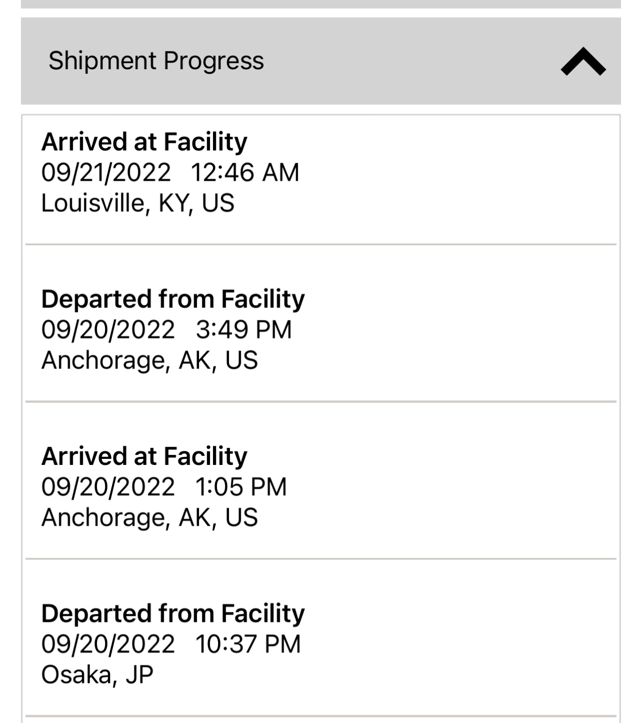 I got an arrival scan into Louisville.There’s a chance you might not see it until Thursday. Last week iPhones didn’t see any arrival scans. It went straight to import scan. Following up with the last departing flight to the destination.