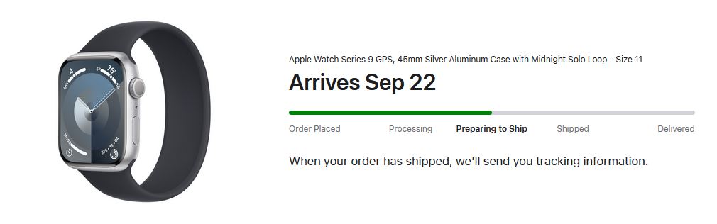 You were right - changed the colour of my band and now 22ndSo many combinations you may have hit something low stock (normally its the bands). A check in UK on a 44mm silver SS with black solo band still shows 9’s delivering 22-26th but store pickup available, and ultras for 22nd?