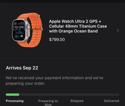 You should've waited until November when Walmart gets there sale I bought my series 8 41mm cellular for $370 last November.Mine has moved to preparing to ship!View attachment 2260901