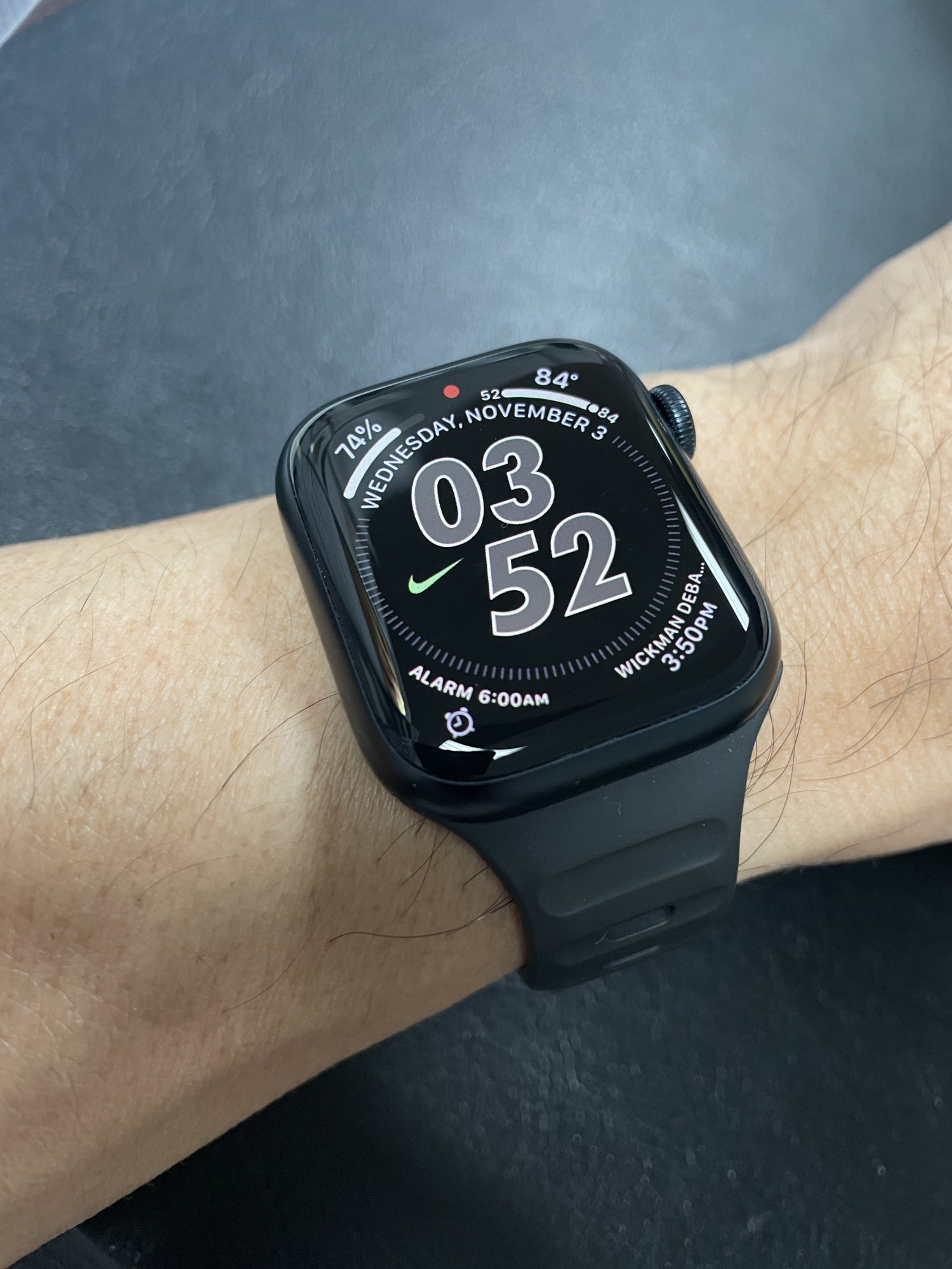 Picture is a 41mm Series 7 Nike in midnight with a black Nomad sport band.