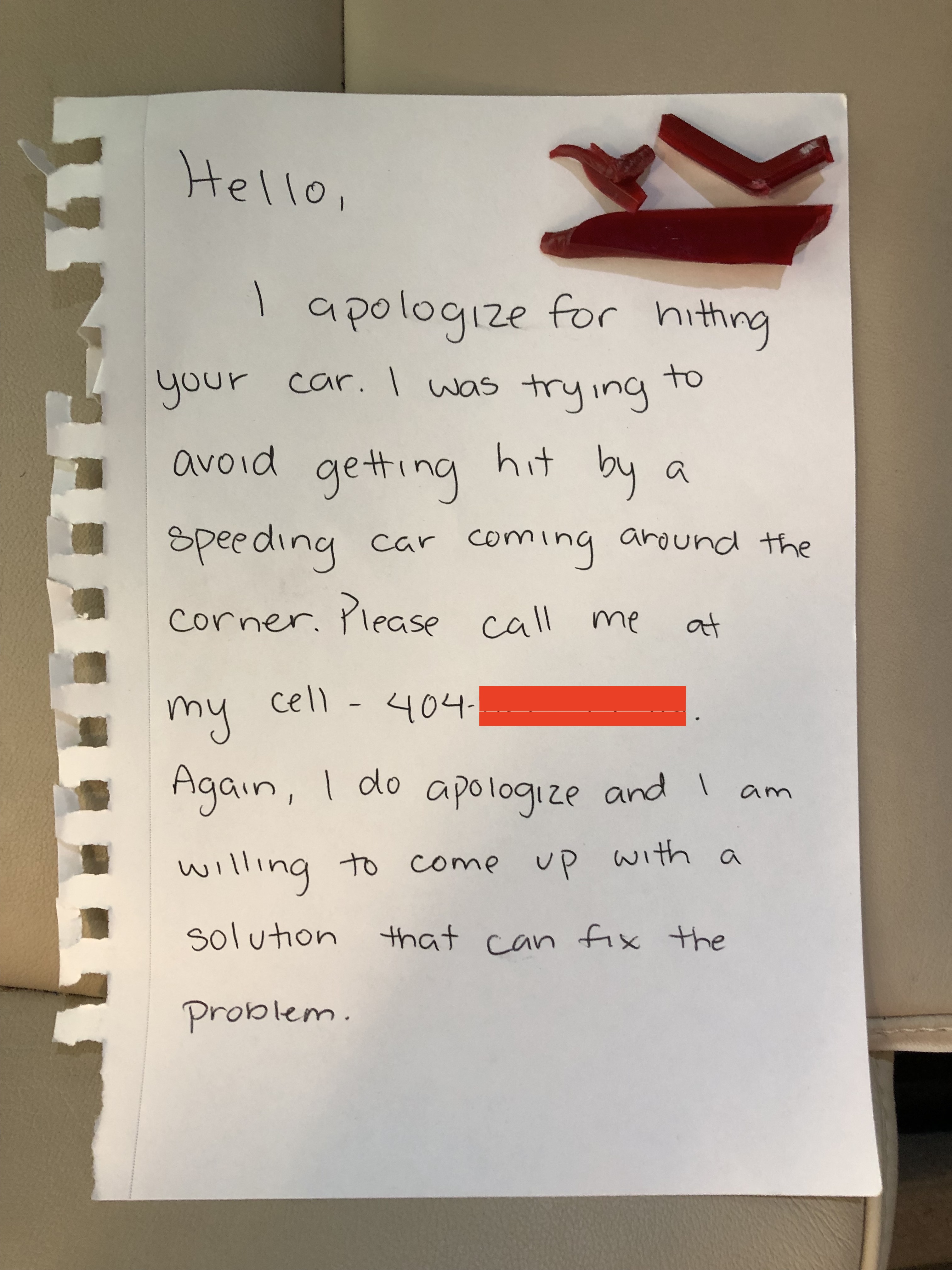 Went for an 8 mile run this morning and came back to this.At least they were respectful enough to leave a note. To add DOUBLE insult to injury: