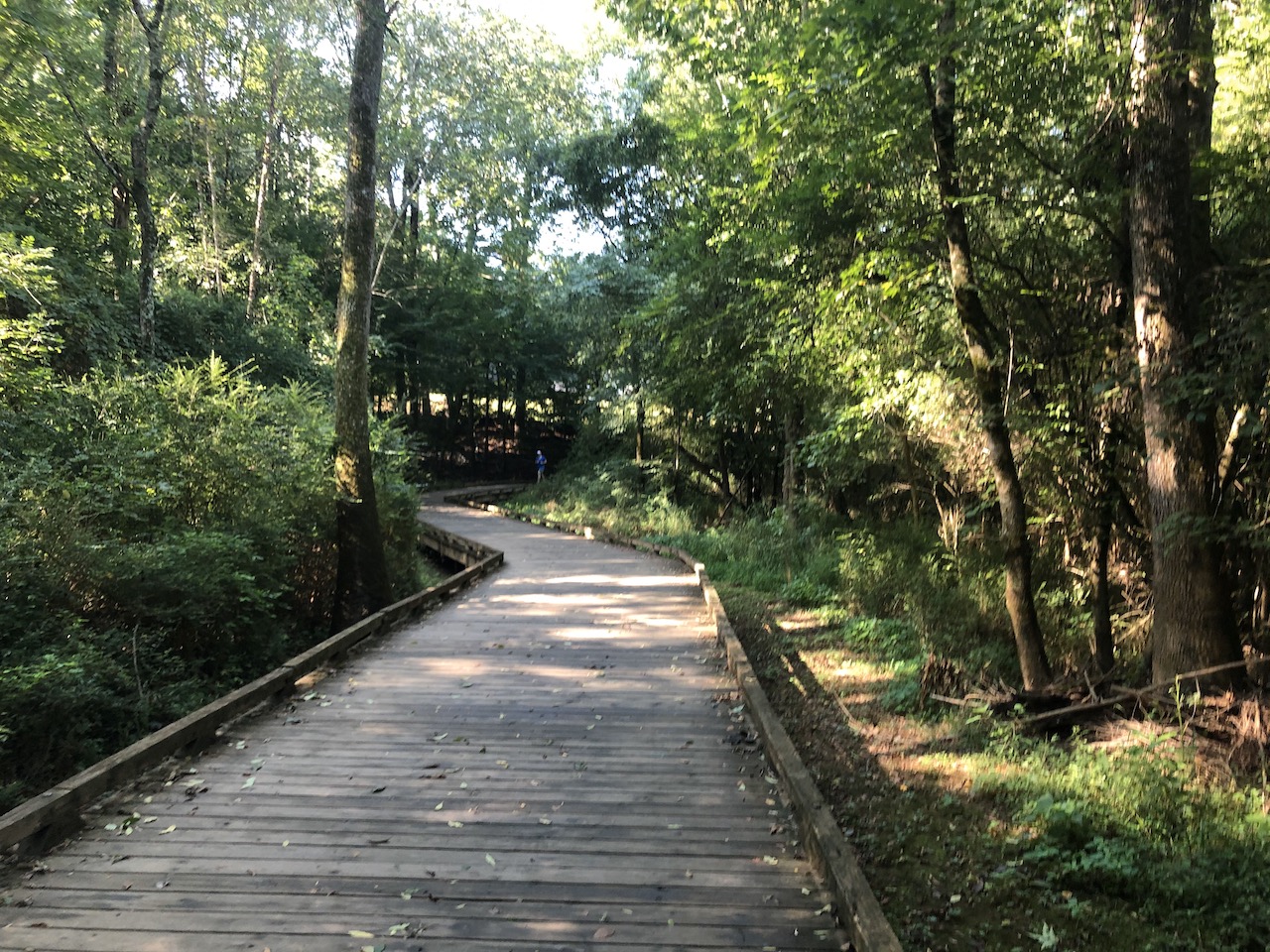 That new section of trail looks nice, sure it can be a tad steamy this time of yr. plus if the wind is calm. How was the trail surface, any cushion as it doesn't look like concrete thank goodness.