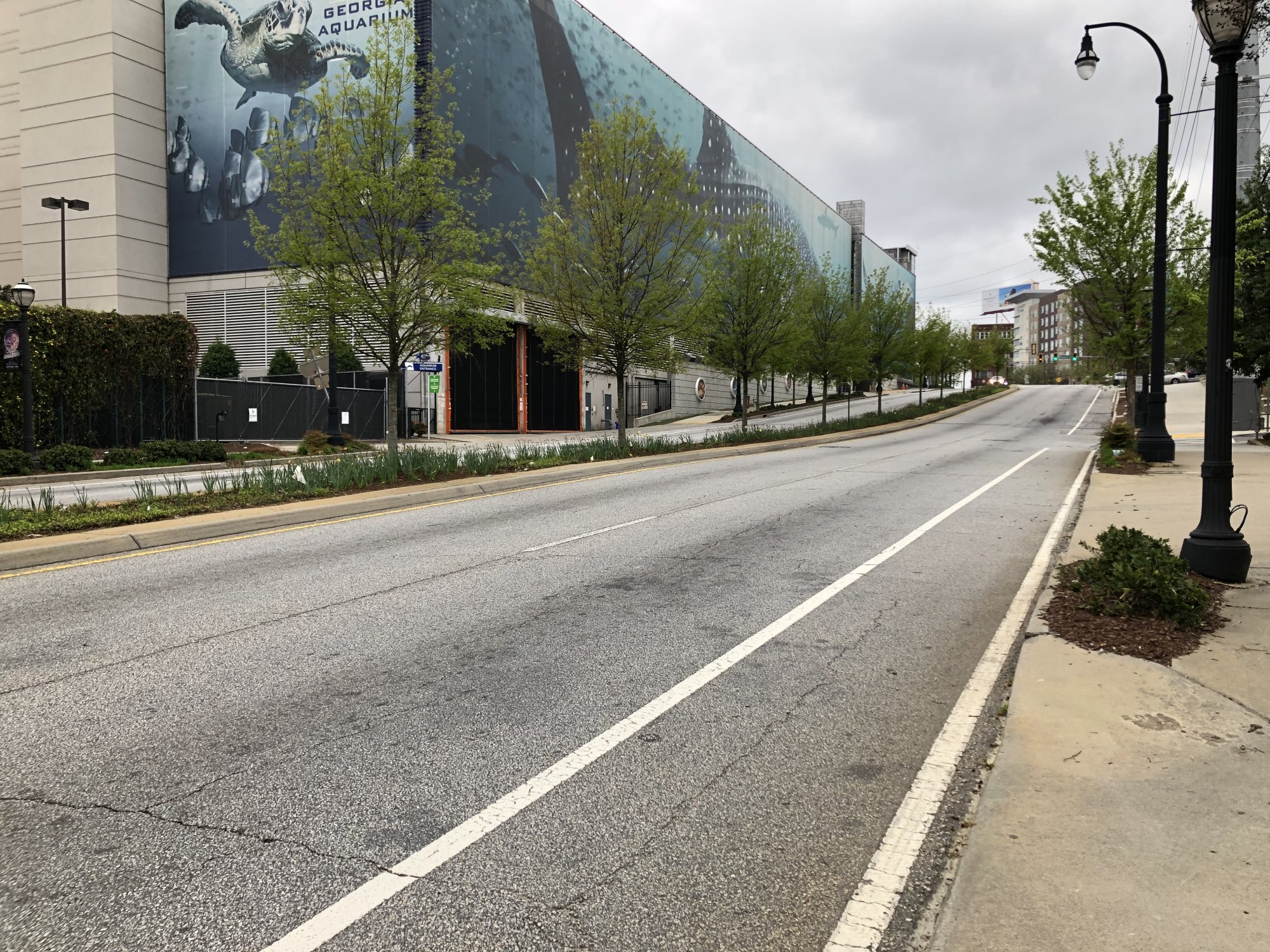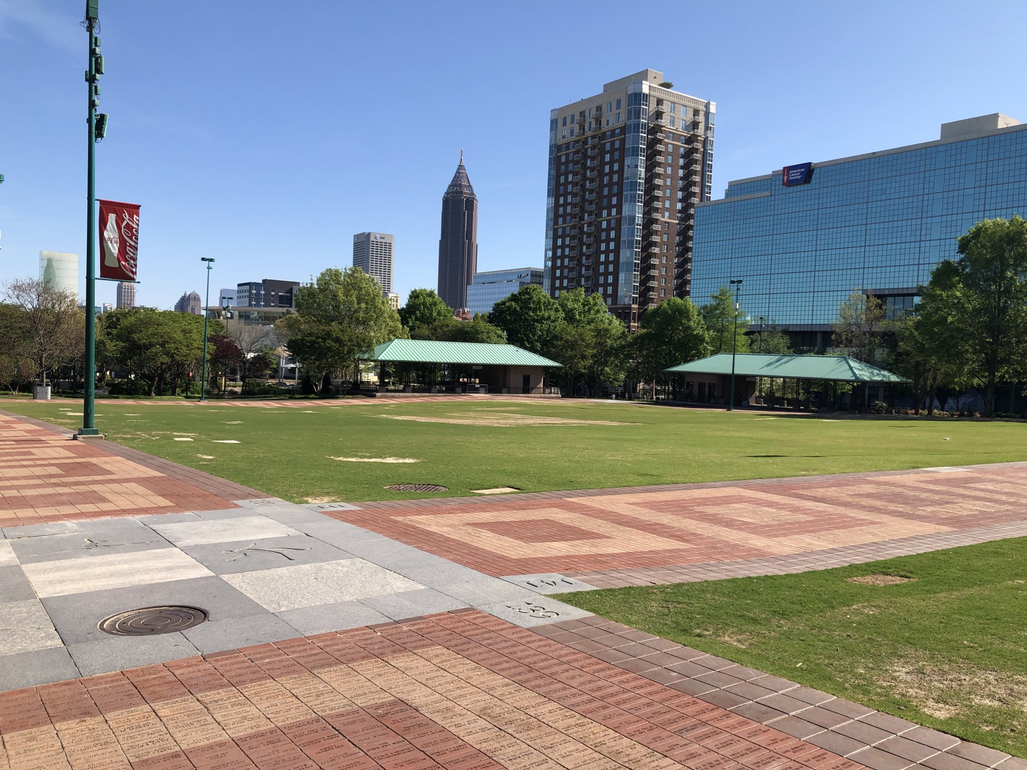 Ran yesterday on a beautiful 65ºF cloud free spring day. Here are a couple of pics from Centennial Olympic park and in front of the Georgia Aquarium. Normally PACKED with tourist/people.