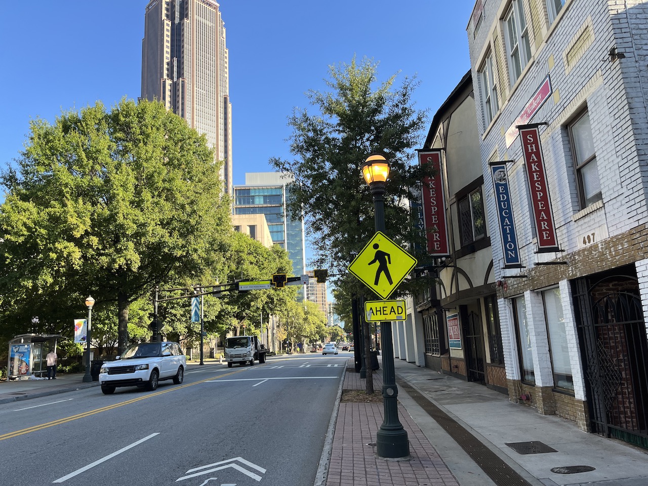 Pedestrian Hawk in SoNo. We now have a few of them in ATL already (invented about 20 years ago) and hope to see them proliferate and become ubiquitous. Probably the greatest advance for pedestrian safety yet.