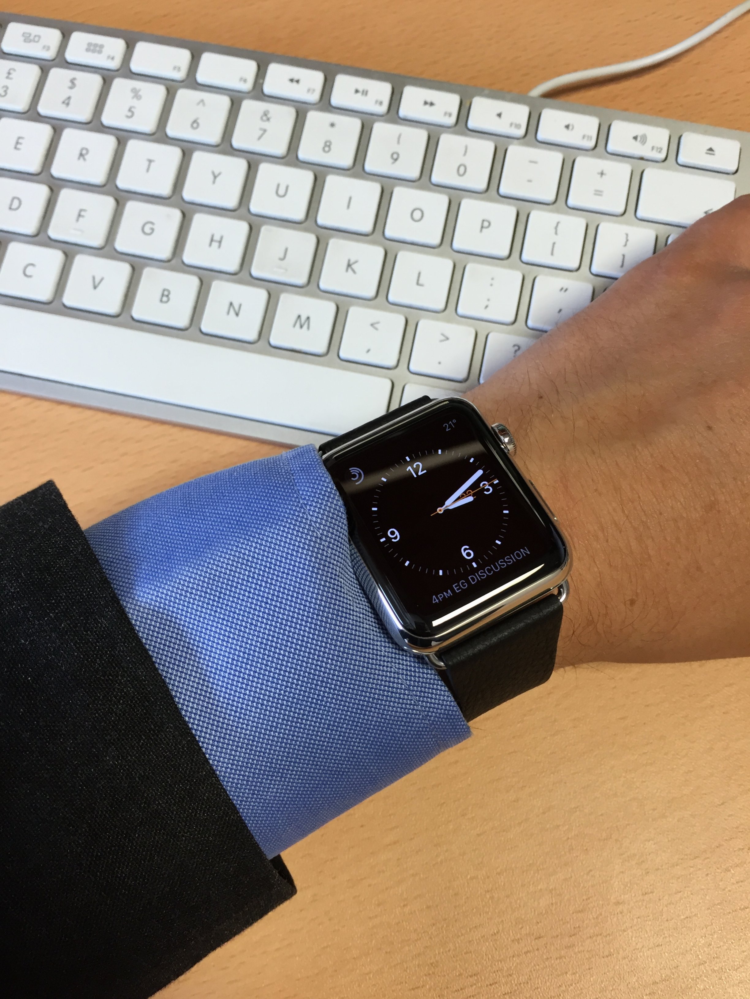 I wear a suit to work everyday and am trying to find the perfect band. Originally I wanted the black leather loop, but in someways it looks even sportier than the black rubber band. (I'm getting the stainless steel Apple watch btw). For anyone else who wears a suit often, what band are you planning on getting?