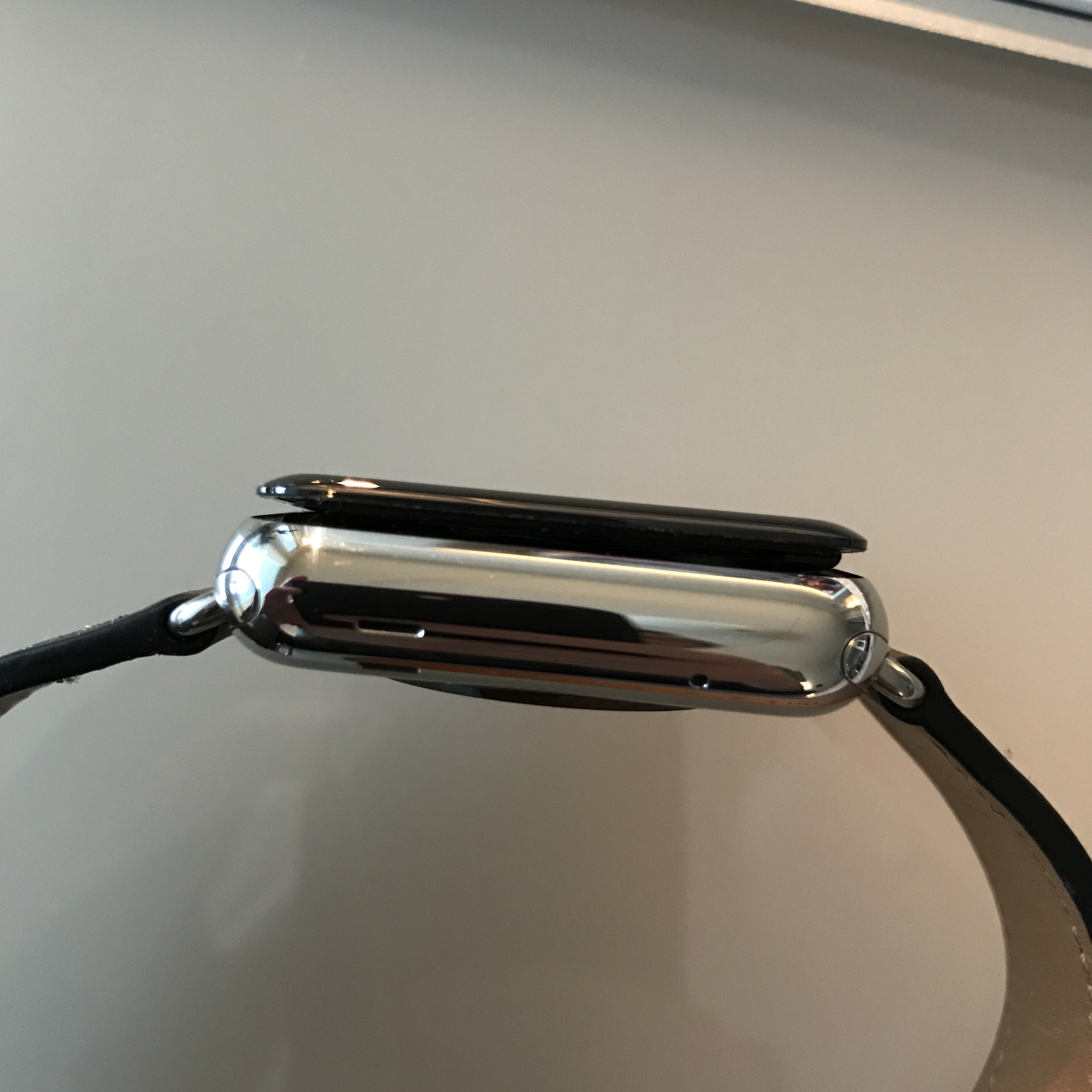 This morning, when I took my Apple Watch (original series) off the charger, I noticed that the display was coming off.