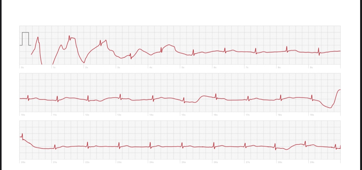 I don’t see what you’re concerned about. It’s a normal ekg. There’s lots of movement artifact.Hi all, can someone explain what that means? I know I shouldn’t rely on an ecg on anApple Watch, but it’s just curiosity.