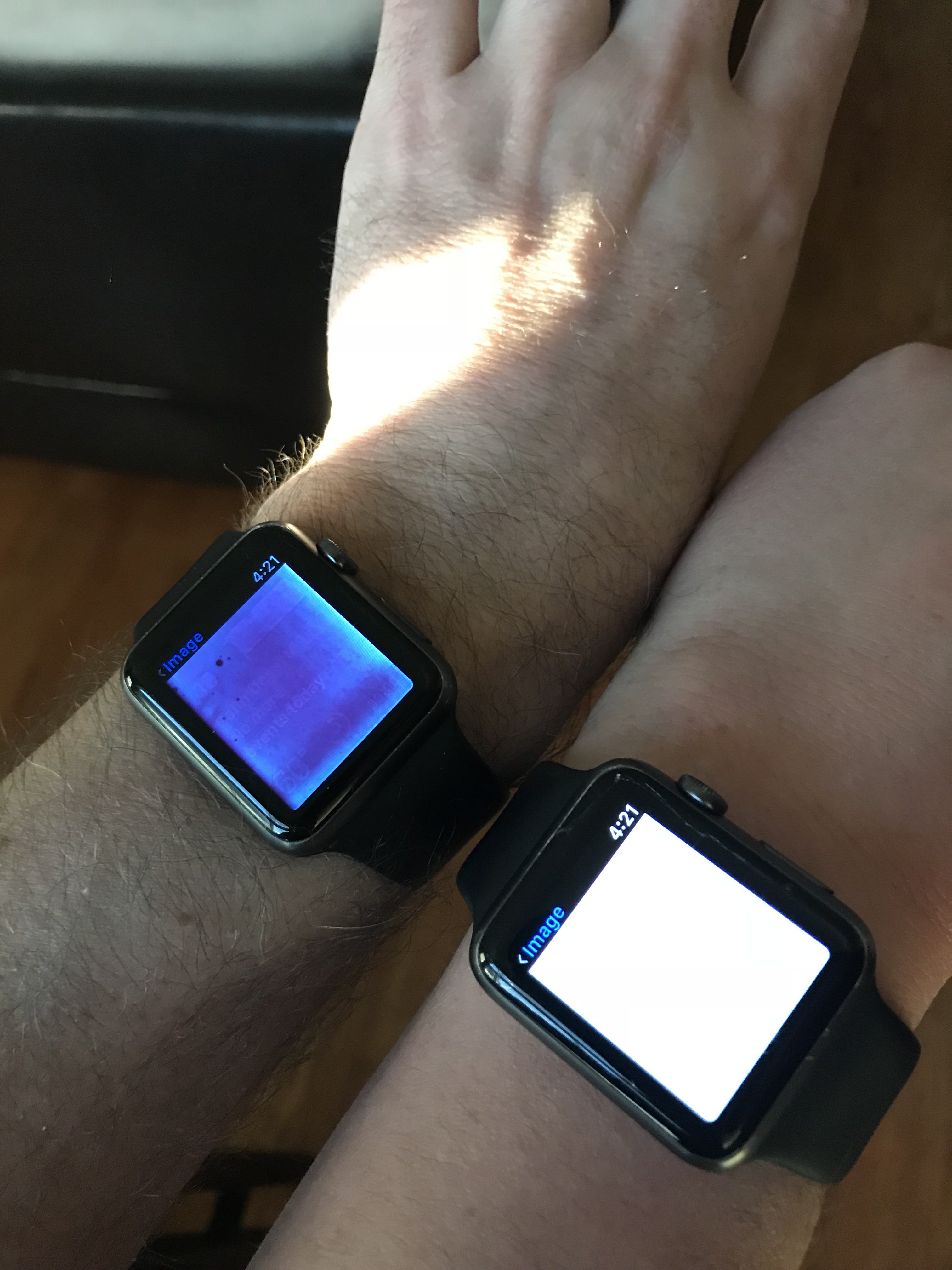 My wife and I are the owners of two apple watches, both Apple Watch Sport (first generation), 42mm, with aluminum case, model number MLC77LL/A. Watches were purchased six months apart. Both watches have gradually become very dim, my wifes' watch (first to be purchased) is so dim, its unreadable except in a dark room. Mine is barely readable in sunlight. I've dialed up the brightness to as high as possible on both watches, and i've tried the suggestions below with no success. I've taken the watches into the genius bar, and was told this type of failure is not common, and the only recourse was to purchase a new watch (both are out of warranty). My thoughts are that if two watches purchased six months apart exhibit the same failure mechanism, then the problem is more widespread than the feedback I am getting from Apple. Is anyone else having issues with a dim screens on their Apple watches??