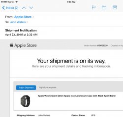 Also, feeling pretty lucky as I ordered the 42mm Sport in space grey. Haven't seen many others who ordered this get shipping confirmation yet?
