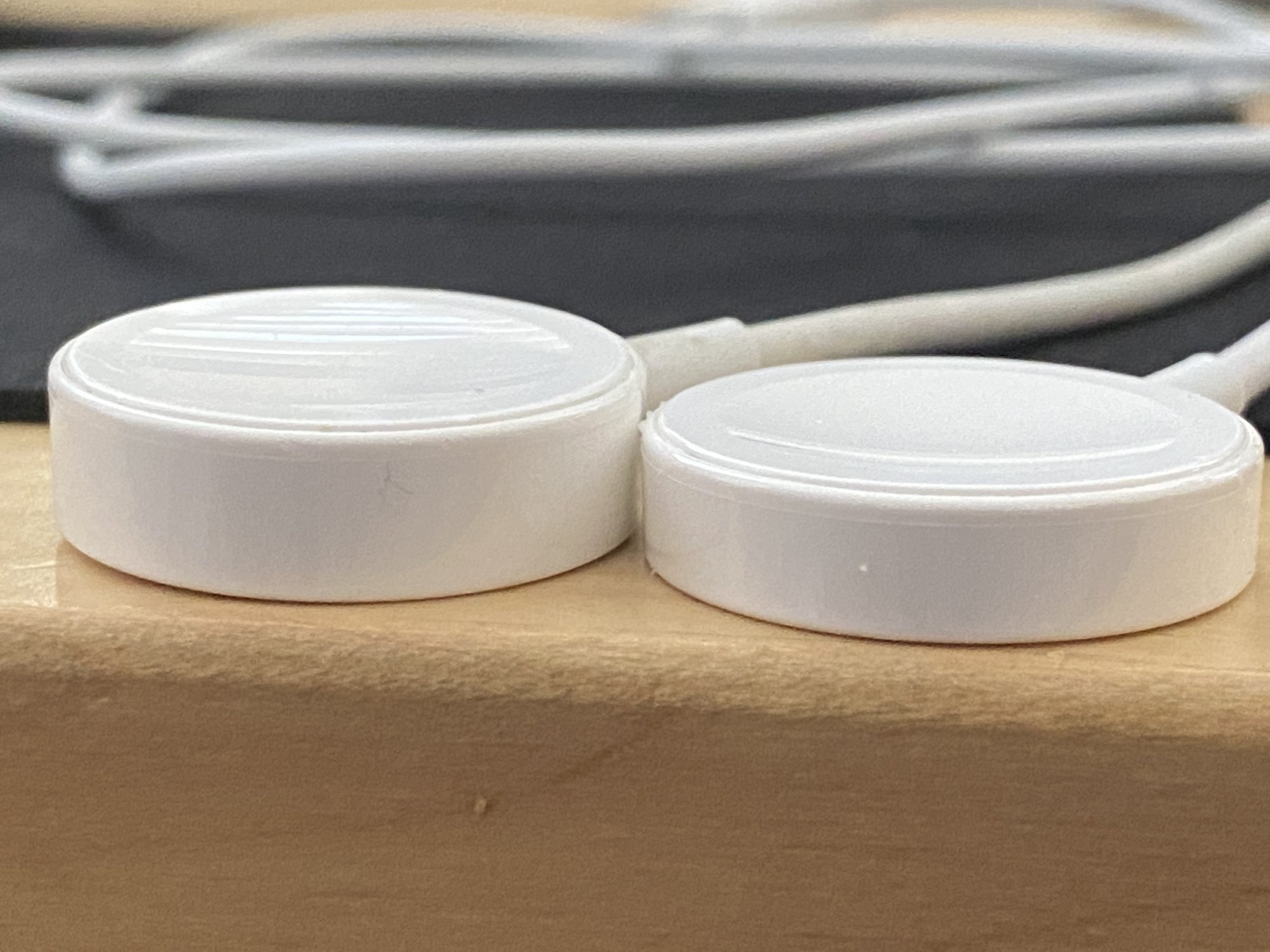 Interesting observation - I BELIEVE that is an Apple Watch 3 puck on the left, and the one on the right is the Apple Watch puck that came with my AW6.