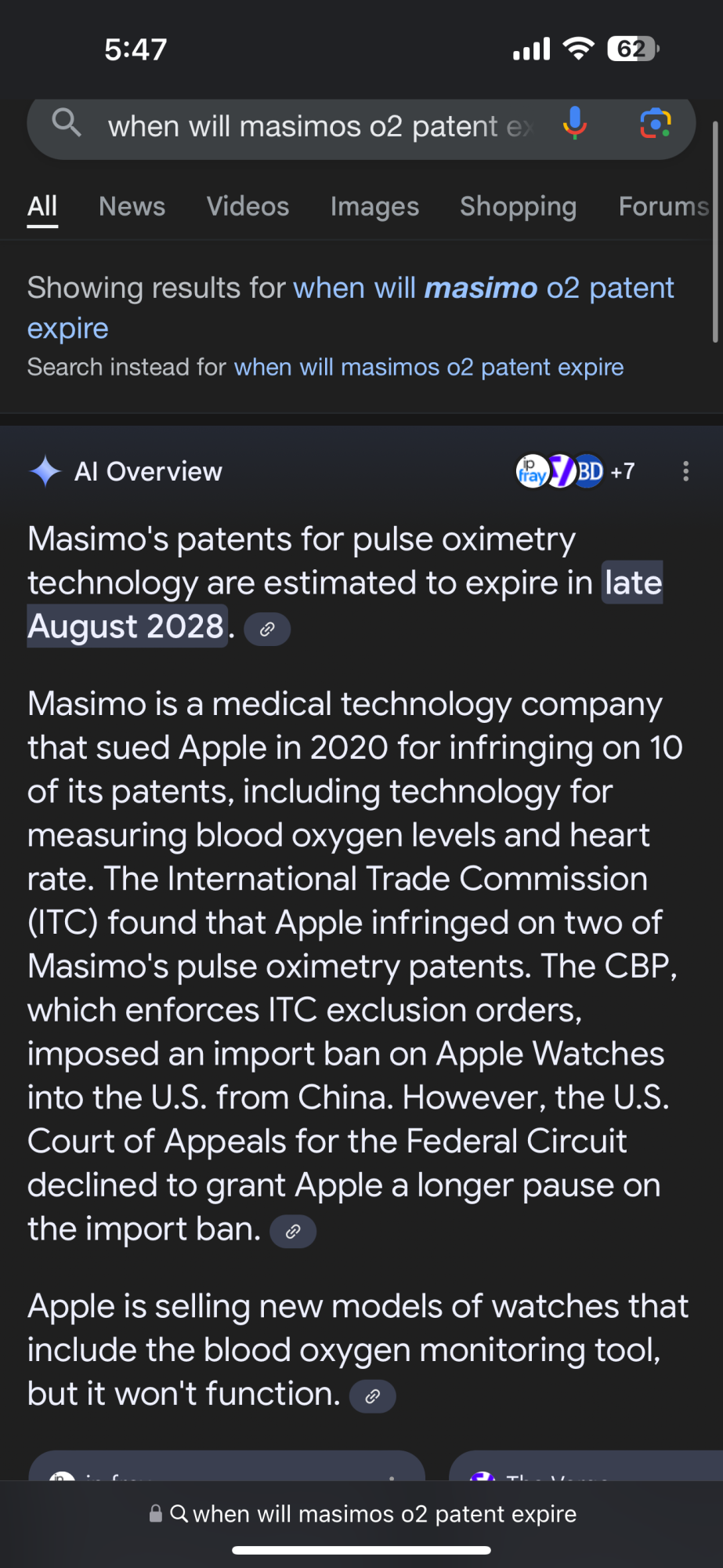 That Apple haven’t licensed, or acquired, makes me wonder if the patents in question are about to expire.