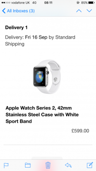 Now I'm having second thoughts and wondering whether I should go with the Nike Watch instead....I guess I can always return mine and get the Nike in October if I want.Ordered the AW2 Space Gray with Nylon band from Target around 8:45am ET. Says delivery on/around 9/19-9/22.