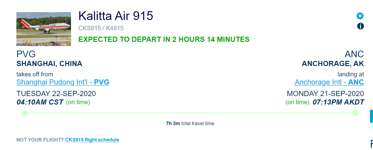 Actually these flights aren't even going to South Korea, they are going from China straight to Alaska. Sorry for the misinformation.Thanks for clearing that up. Looks like there are two UPS flights landing in Louisville, Kentucky in about an hour. Hopefully I should be getting an update soon.