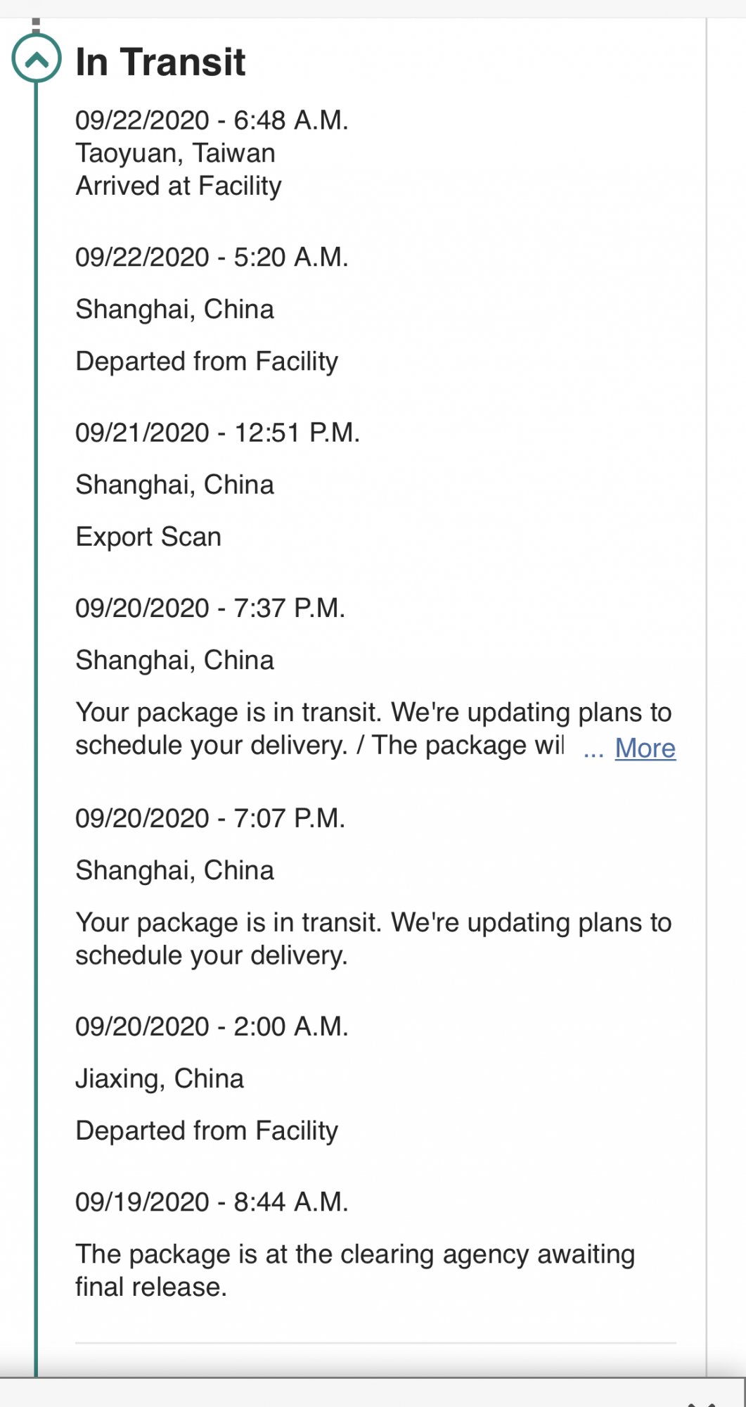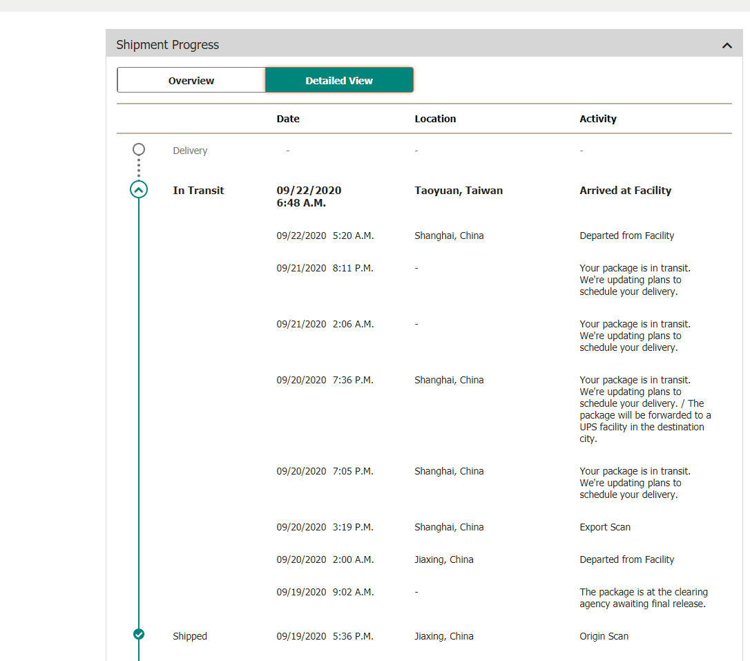 What’s going on is that UPS has determined that routing through Taiwan is the most efficient way to get your package to you and there’s still plenty of time for it to arrive Wednesday.Ok, I'm super confused right now. I just got another scan in Taiwan! What is going on??!?!?