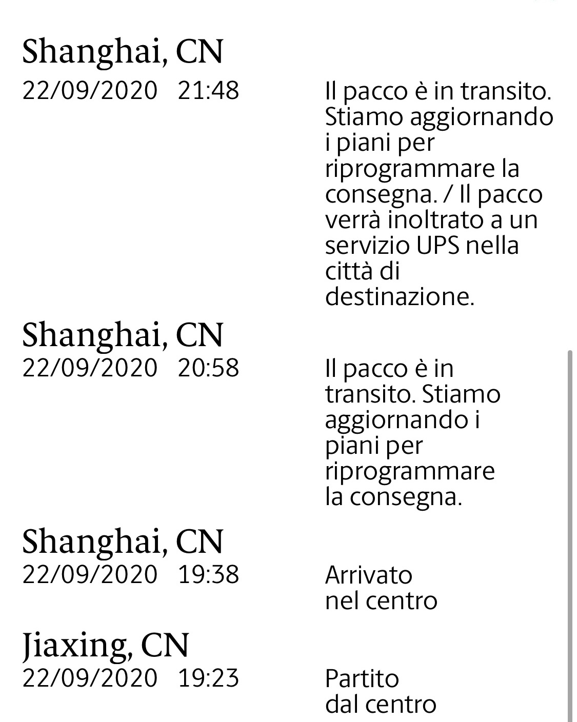 Apple says deliver October 1st, for a brief window of time UPS said September 28, now it looks like they're rescheduling. Probably aligning with Apple. I know I'll be stuck here in Shangai for a long while before heading to Europe.View attachment 957562