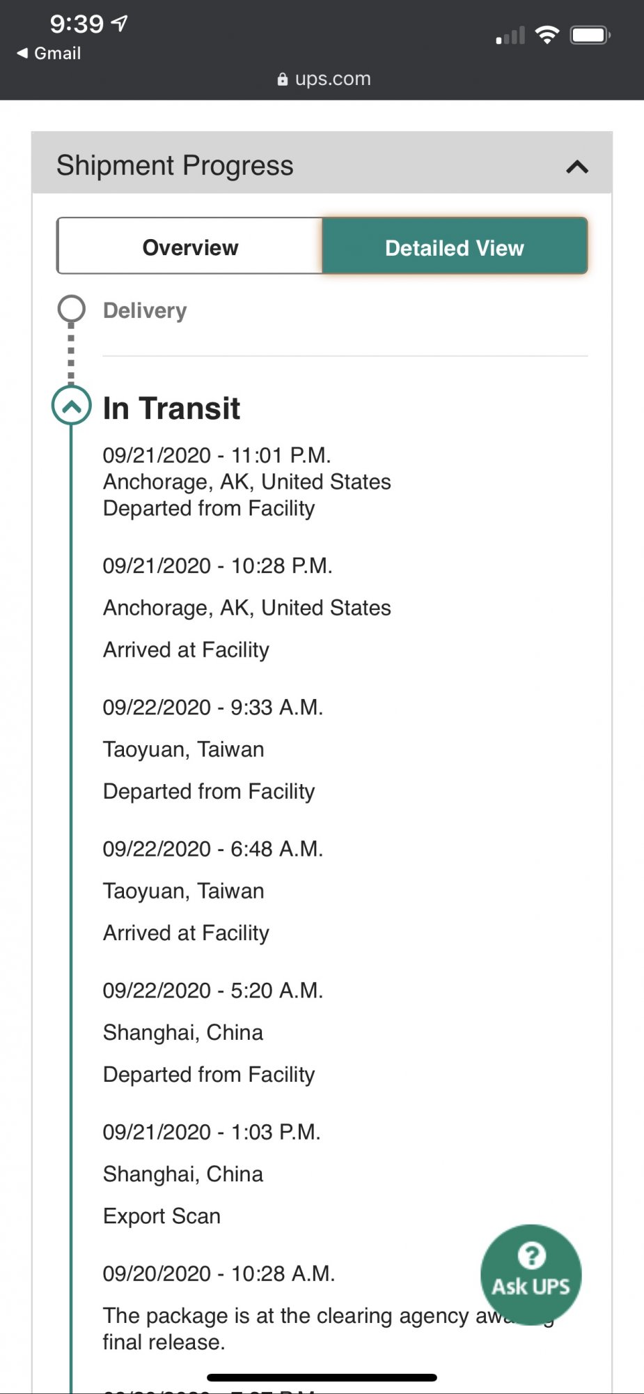 We’re on the same flight - UPS89, and I also received a delivery update tonight for tomorrow. Before that, was set for 9/24 delivery. Seems like it will have to move pretty fast to make it tomorrow, but UPS says 9/23, so I choose to believe them!ups just text me notify about delivery tomorrow .. lets see what happens