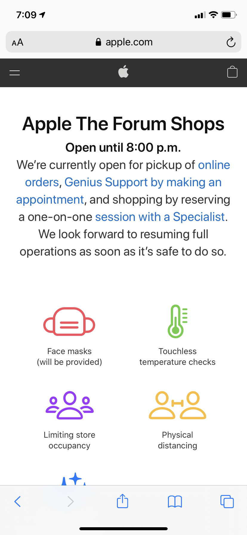 No Apple stores are open in Las Vegas Nevada so I am out of luck.