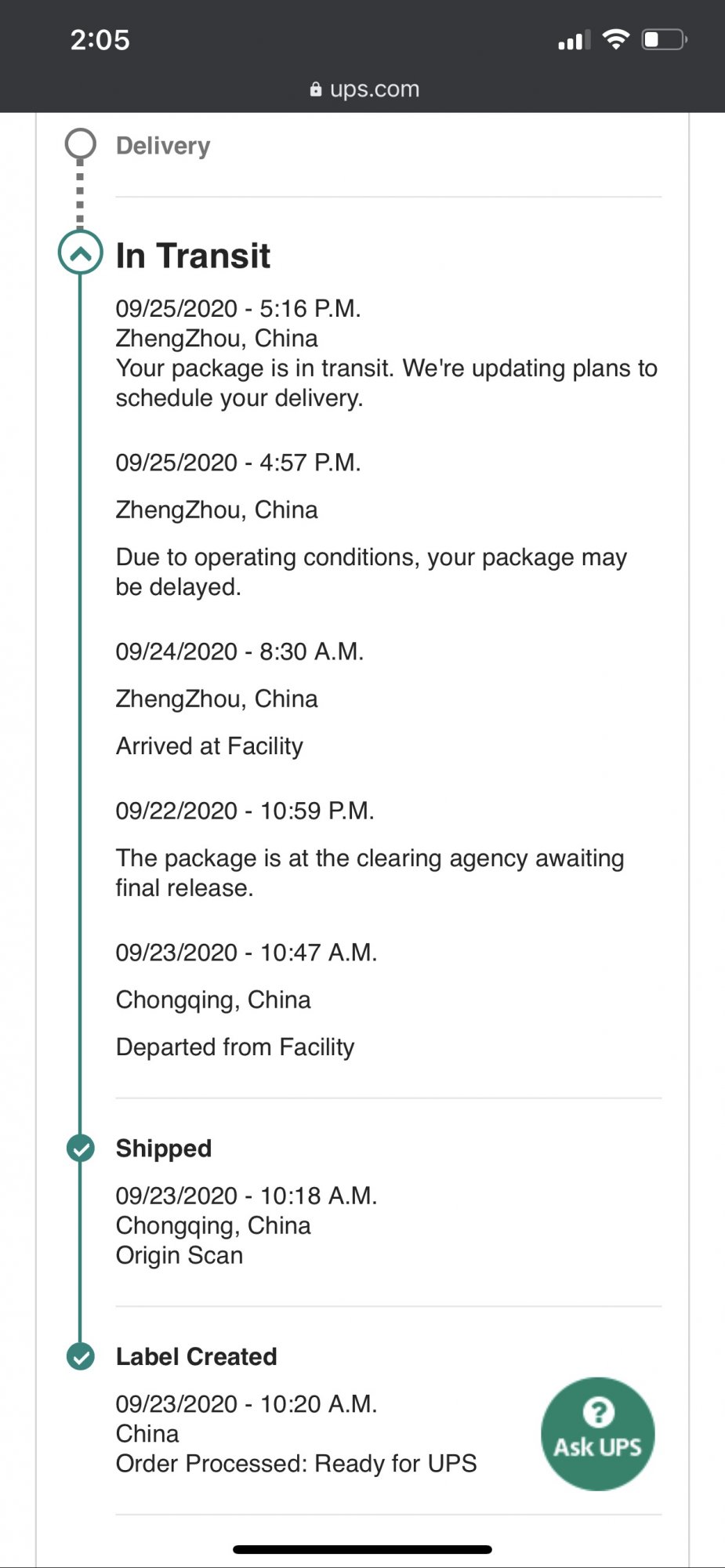 ive been lurking for a bit but I’m curious if anybody is having this issue. Ups originally gave me a delivery date of Monday, September 28th for my Apple Watch se. it changed to rescheduled delivery yesterday morning and hasn’t moved from zhengzhou in a few days.
