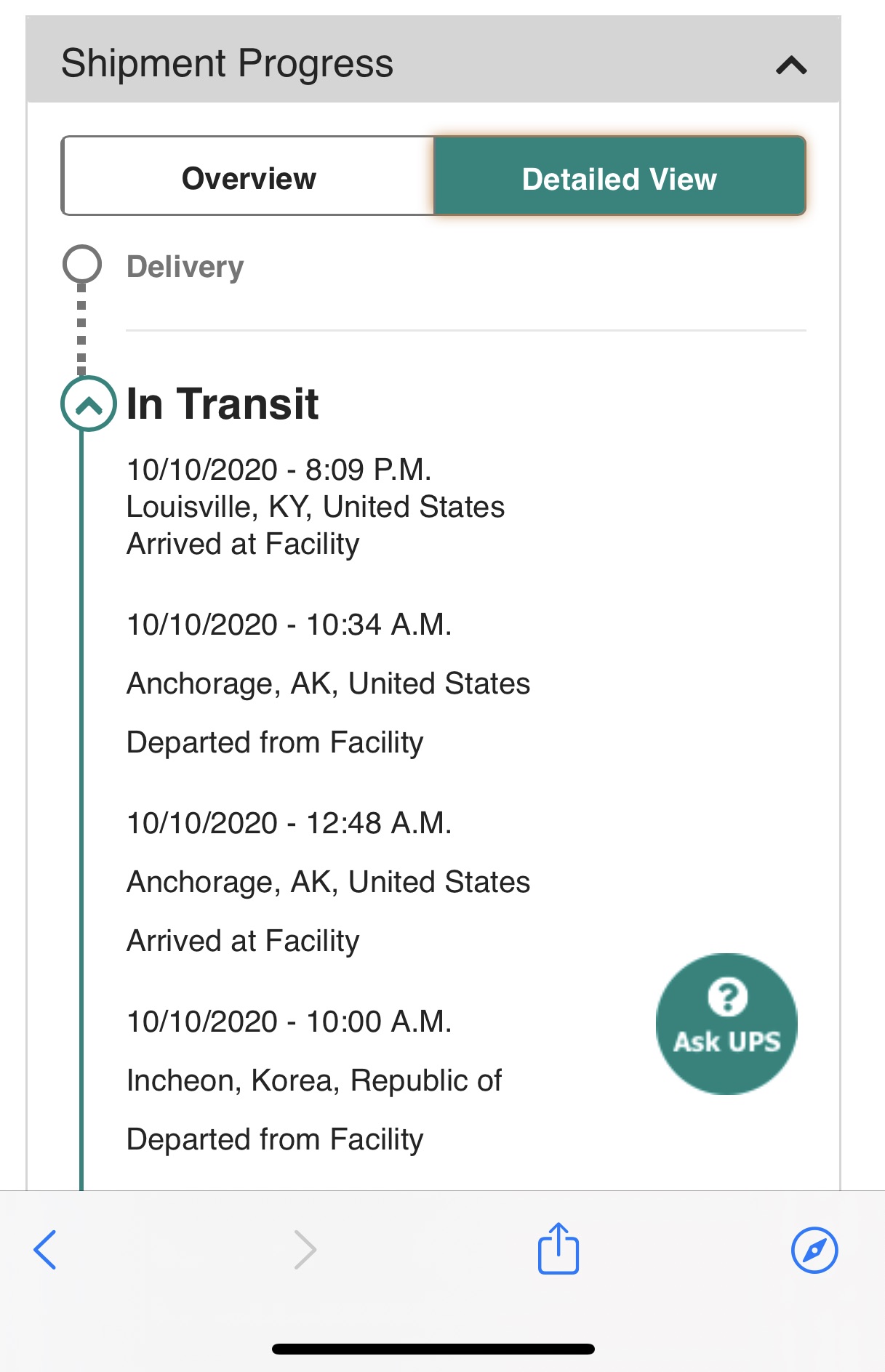 Can someone please track an order for me. My lovely AW was departed At 10:16 from Osaka, Japan. Not sure if it’s going to Alaska or Louisville. Please advise via flightware