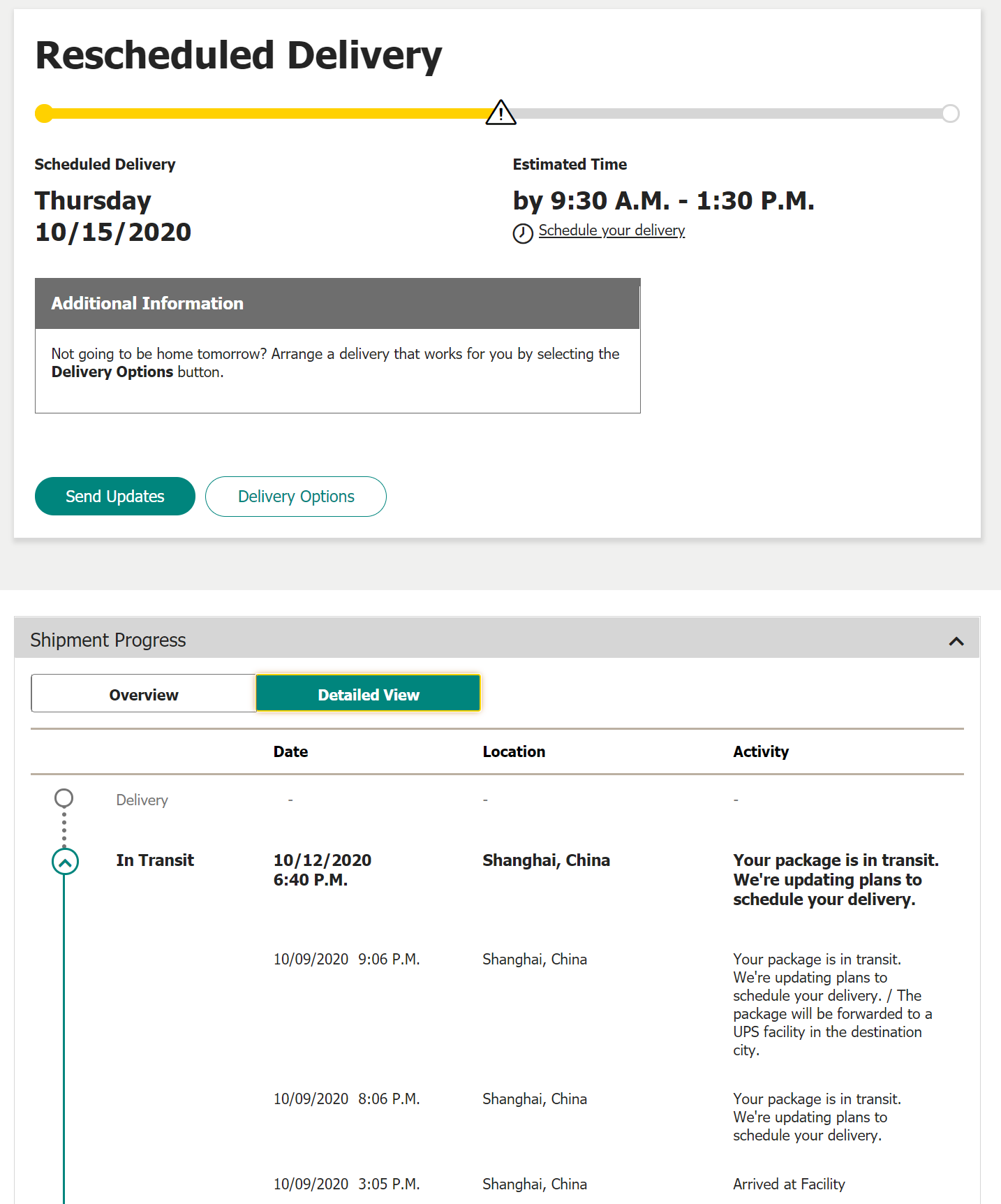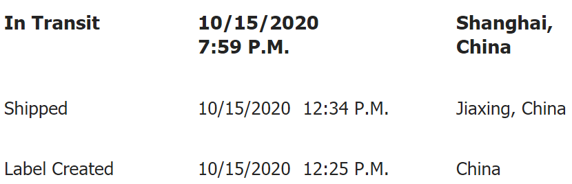 Currently shows it just arrived in Anchorage, so I’m guessing Tuesday is accurate. (It’s coming to Dallas).