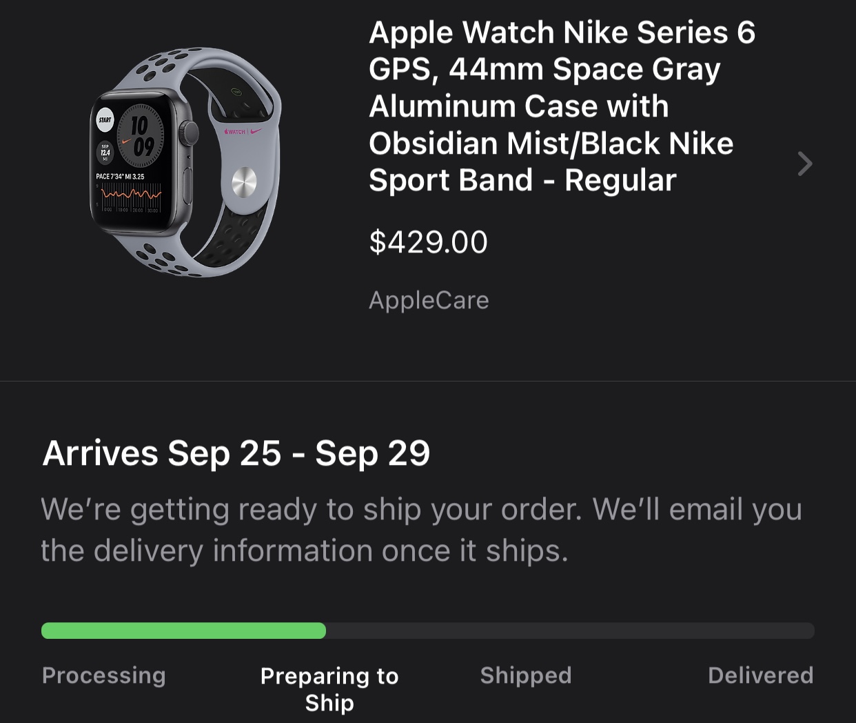 Got a shipped email this morning... and .... it was my band. Nothing in UPS or FedEx for the watch, Apple still says 25-29. Oh well, I guess I was right about tempering expectations.