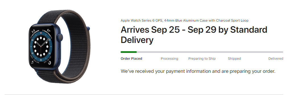 "We have everything necessary to complete your order. We’ll update your delivery date when your order is preparing to ship."