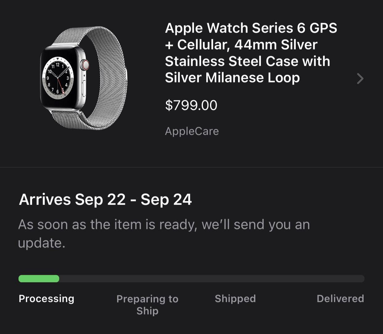 My launch day order won’t be here till next week, and my local store has some, so I’m definitely ordering again and picking up today, and returning the orginal order.Just received a UPS tracking number but its not in the system yet. Apple site is showing 28th delivery date. Just found out my local Apple Store has it in stock. Debating if I run over and pick it up (I could walk there in 5 minutes) or just suck it up and wait the few days for the delivery. I am terrible at waiting, lol!