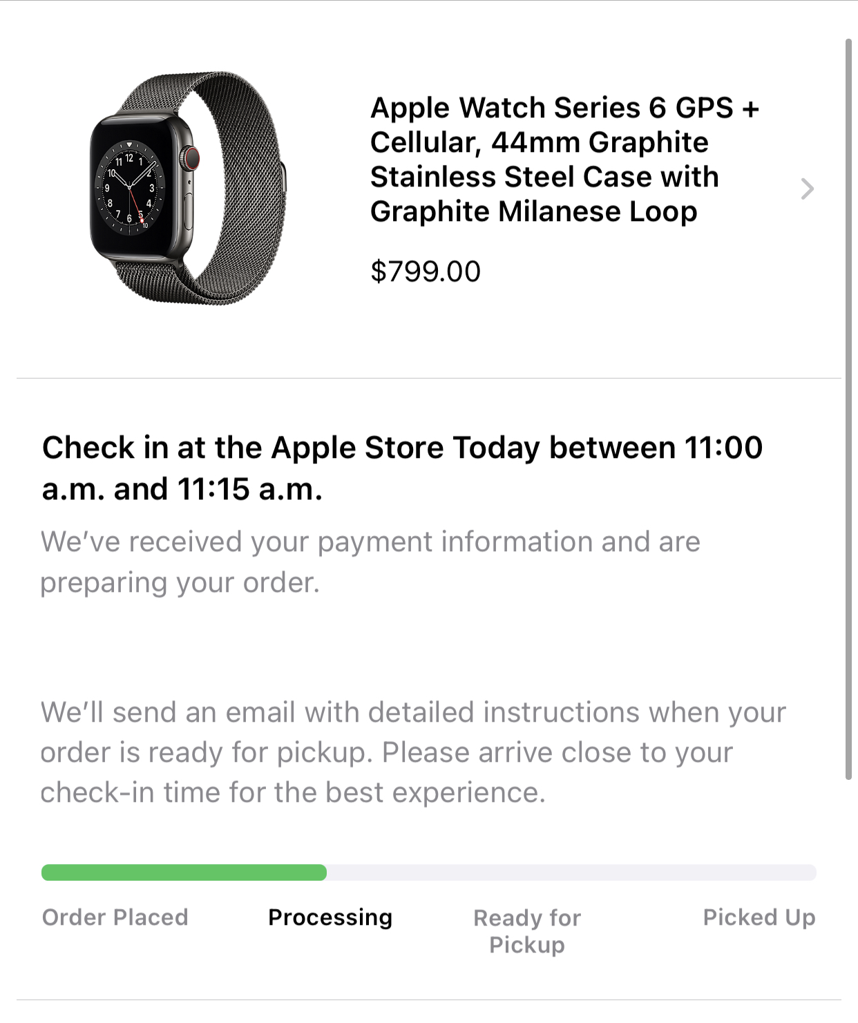 In-Store Pick up is now available for pick up in US on Apple Stores that are open. I will picking up the 44mm Blue aluminum model at the Store.