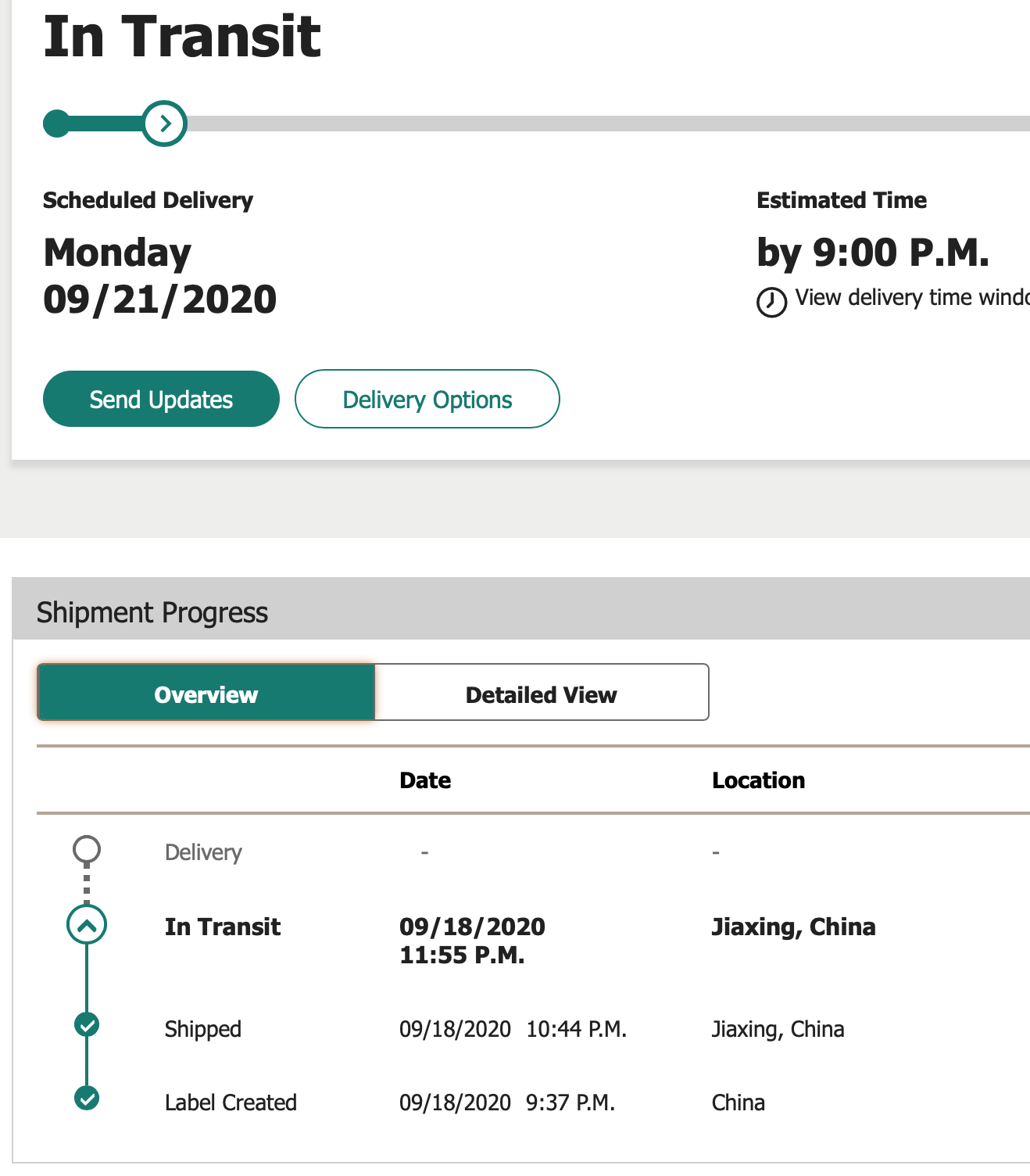 Was saying 9/28 just 15 mins ago. Now it is saying 9/21 estimated by 9:00pm.