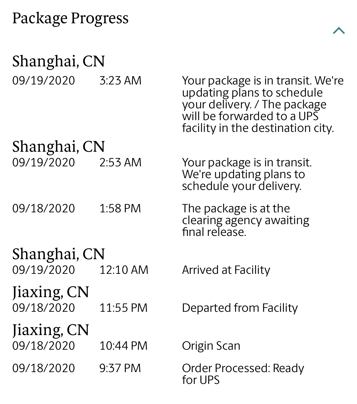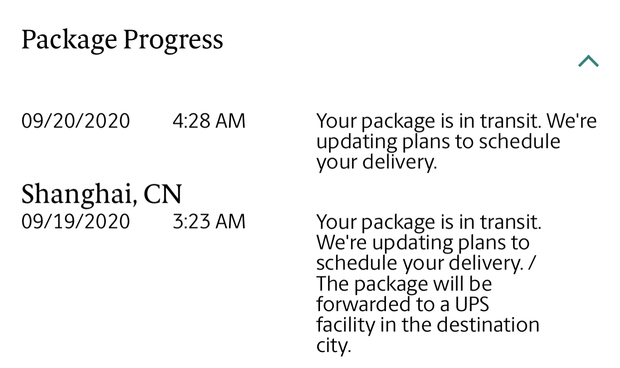 Mine shows the same thing - I *think* your screenshot shows that its currently on a flight from Shanghai to the US. At least I hope so. Mine shows a tentative delivery date of Monday.View attachment 955949