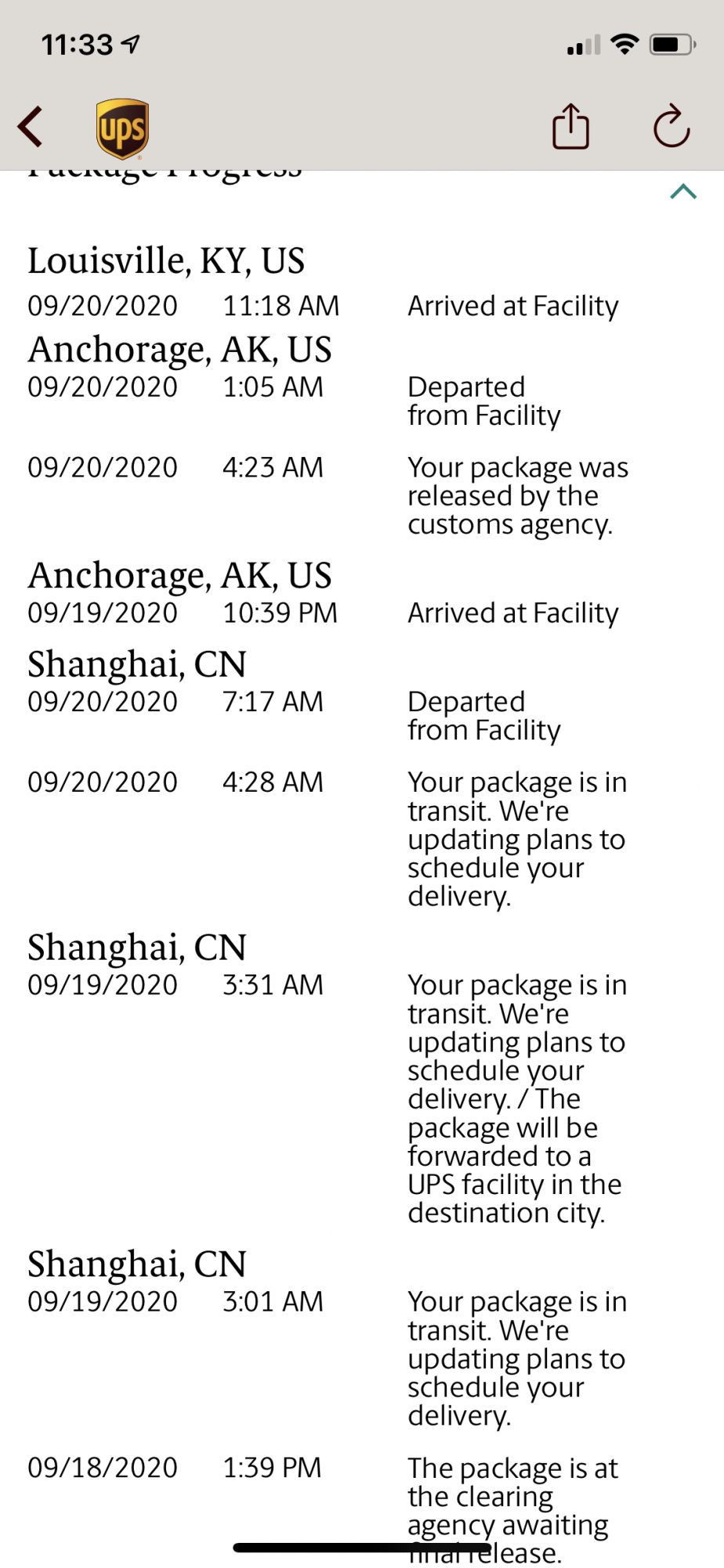 Good news!, UPS package 📦 cleared for 🚚. Confirmed delivery date by UPS is 9/21.Update at 9:15 AM