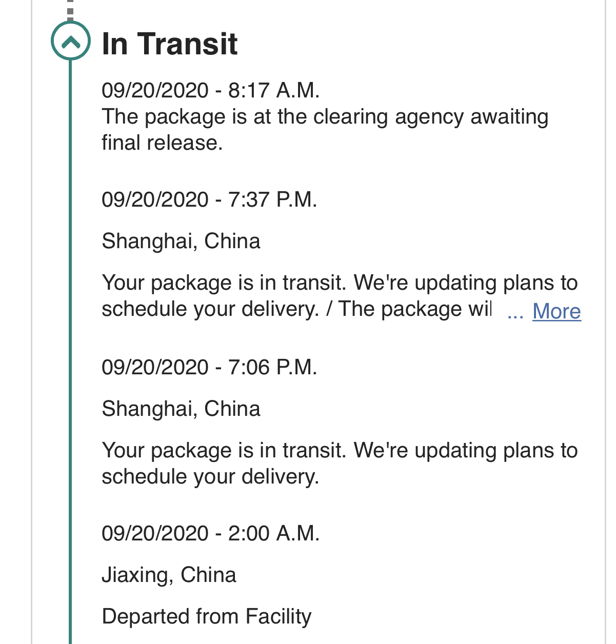 Mine hasn’t moved either. It’s morning now in Shanghai so I’m hoping to see movement soon.@ 2am crew, how we all holding up? Mine hasn’t moved since the 19:39 “in transit” scan, guessing yours haven’t either?