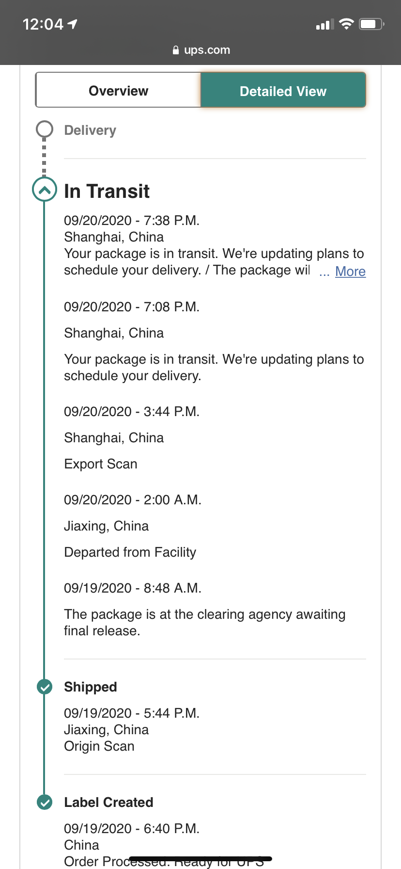 Is your package also showing 9/21 delivery still?No, I am "The package is at the clearing agency awaiting final release." I have the earlier export scan (when first arrived in Shanghai), but then they have to go through customs. I am stuck in perpetual customs!!! Did I fall off the pallet and I can't get up???????