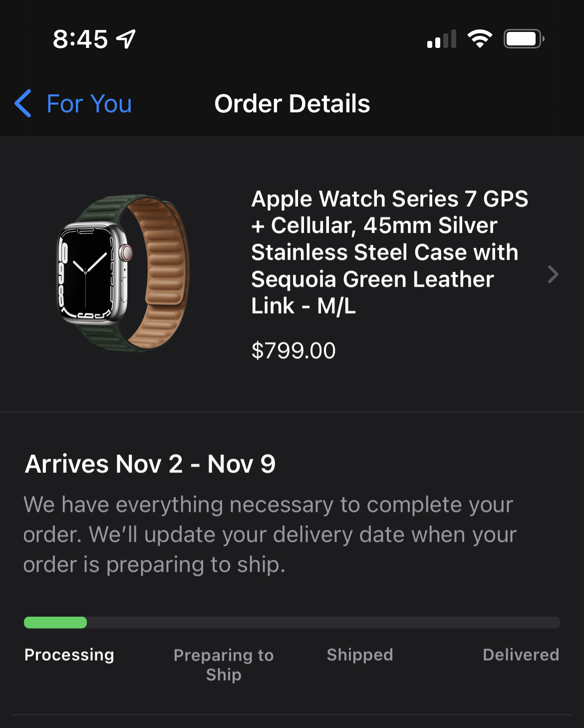 So my series 7 shipped yesterday (Monday 10/11) morning, and for the first few hours I was able to access my invoice on my Apple.com order page (the "See Invoice" link only appears after an Apple product has shipped). However, I noticed that, contrary to previous orders of different products, the watch's serial number was not on the invoice. A few hours later, the invoice became unaccessible from that same link (I get an error message). And it's been like this every since early yesterday afternoon. Is anybody else able to see their invoice on the Apple.com order status page?