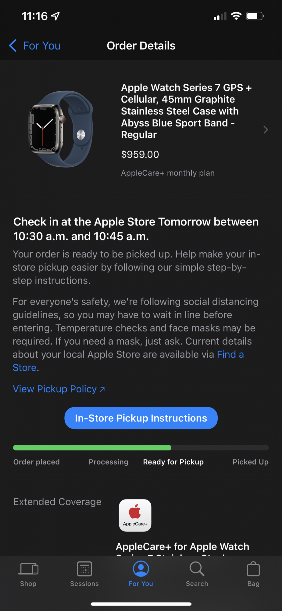 ahhh. Could be because you have a later time slot. I’d be surprised if you didn’t get the pick up email by tomorrow morning.No I'm in Etobicoke! My local store Sherway Gardens had none available when I ordered, so I selected Eaton Centre for tomorrow evening. Still showing "Processing".