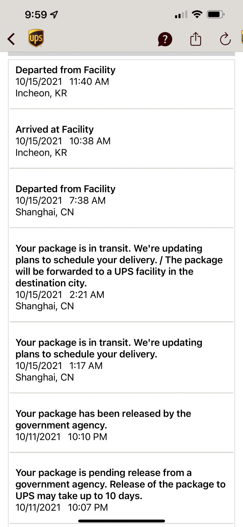 Look at all this sadness.My launch day watch which went to “Shipped” on October 11 but sat in Shanghai for the last four days finally started moving tonight, but UPS changed the delivery date in the app to October 18.
