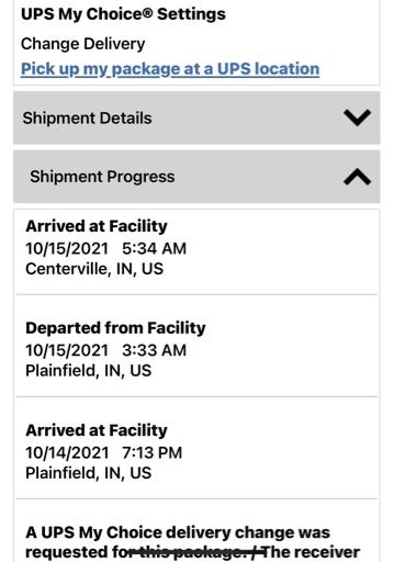| 10/14/2021 10:20 P.M. | On the Way A flight cancelation has delayed delivery. We're updating plans to deliver your package as quickly as possible. 😩🥺😢 |