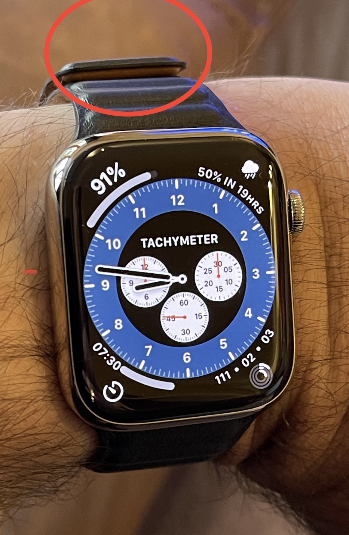 Glad I got the midnight leather band, looks very nice with the silver SS, why does the band wrap around that far? I’m OCD, don’t like that. 🤦♂️😂