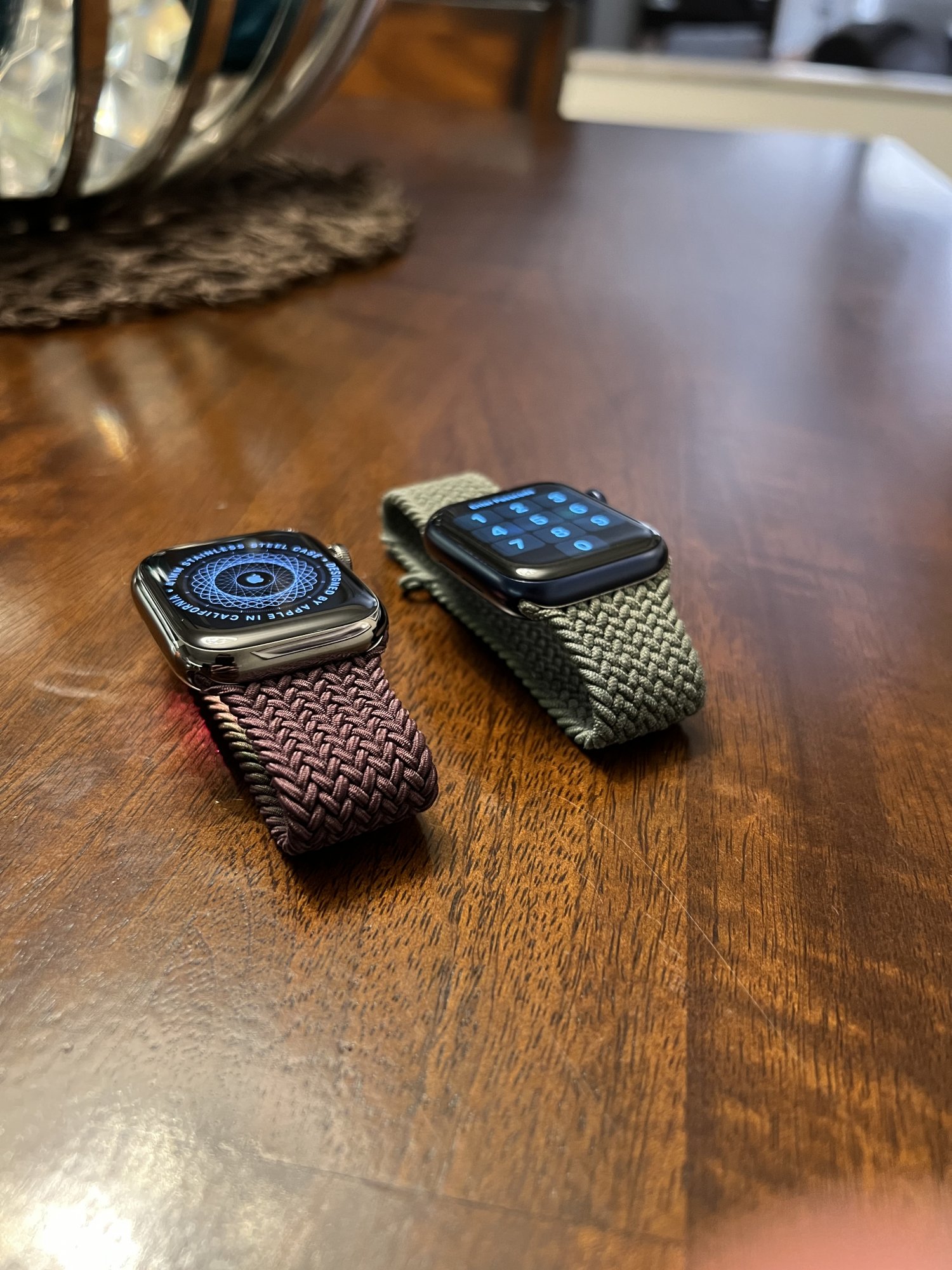 Old S6 Blue Aluminum with Inverness Green Braided Solo Loop vs S7 SSG with Dark Cherry Braided Solo Loop.