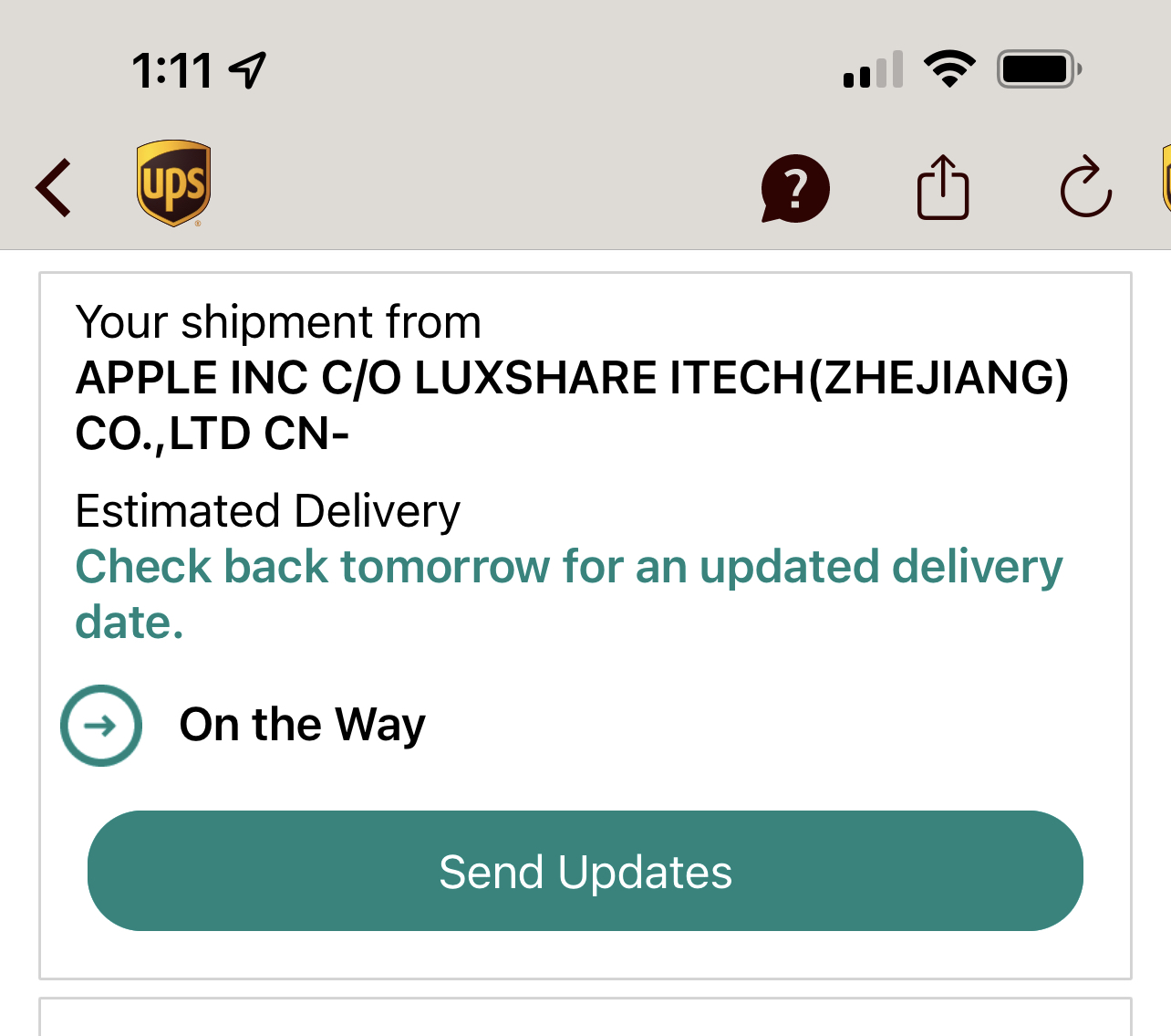 I am based in Europe. Most of the orders are shipped from European local hubs. Just checked my order and it is prepared for shipping. Probably will get a tracking number once it leaves the local hub and it will arrive the next day after shipment. Probably with DHL express.You might try to use UPS app, website if that is going on you might have the label and such created and tracking showing finally. I have a fee account however so when I log in to website or app on iPad or iphone I see such tracking while it moves from factory to airport and through the usual customs scans